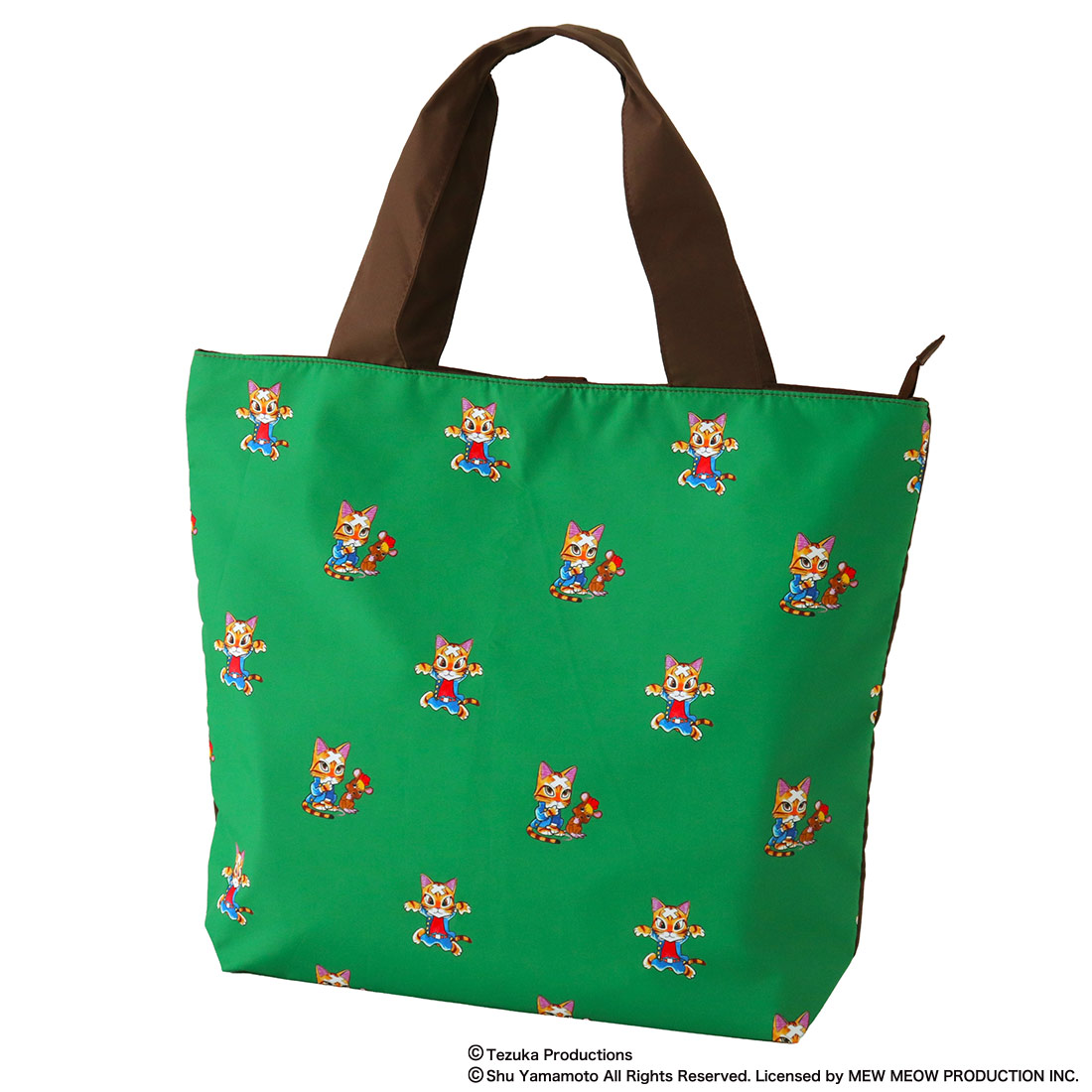 キャットアート ファスナー付 エコバッグ/マイバッグ(パッケージ入り)三つ目猫がとおる グリーン【CAT ART】