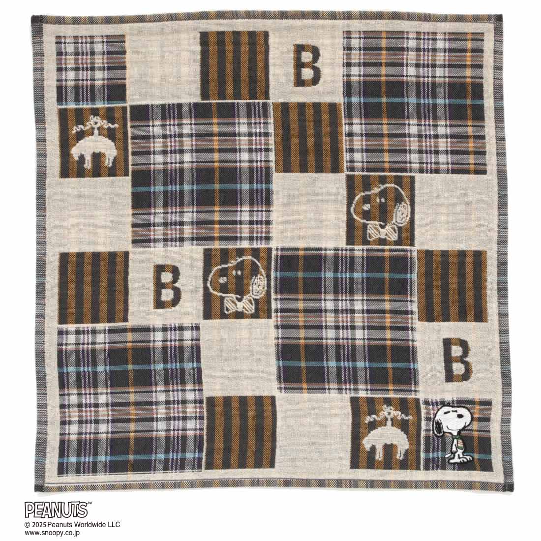 【10月1日 午前10時 発売開始】 ブルックス ブラザーズ × ピーナッツ 大判 三重ガーゼハンカチ(34cm)チェック&ストライプ ベージュ【Brooks Brothers × PEANUTS】
