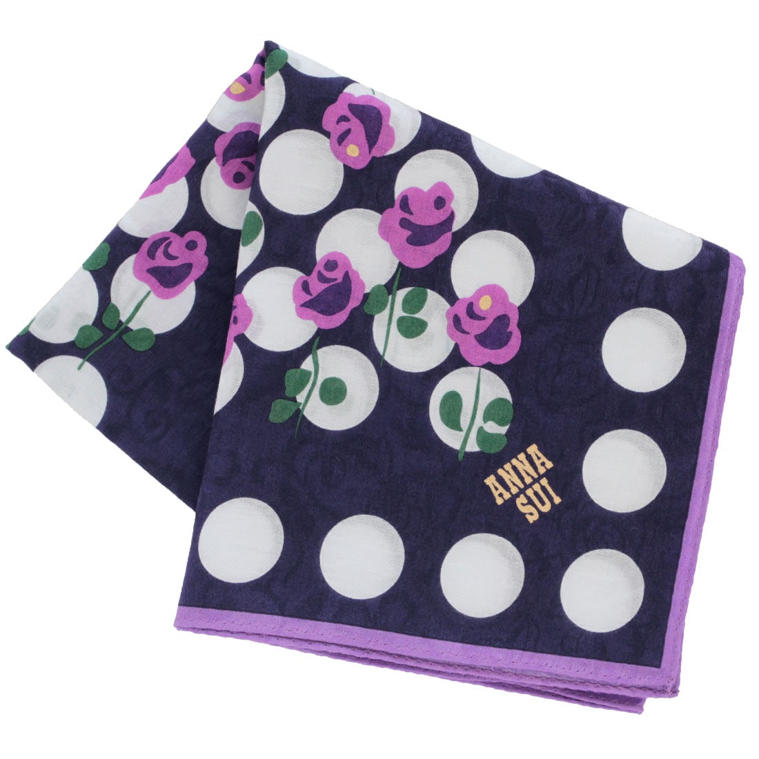 アナ スイ 大判 プリントハンカチ(58cm)ローズドット パープル 【アナスイ ANNA SUI】