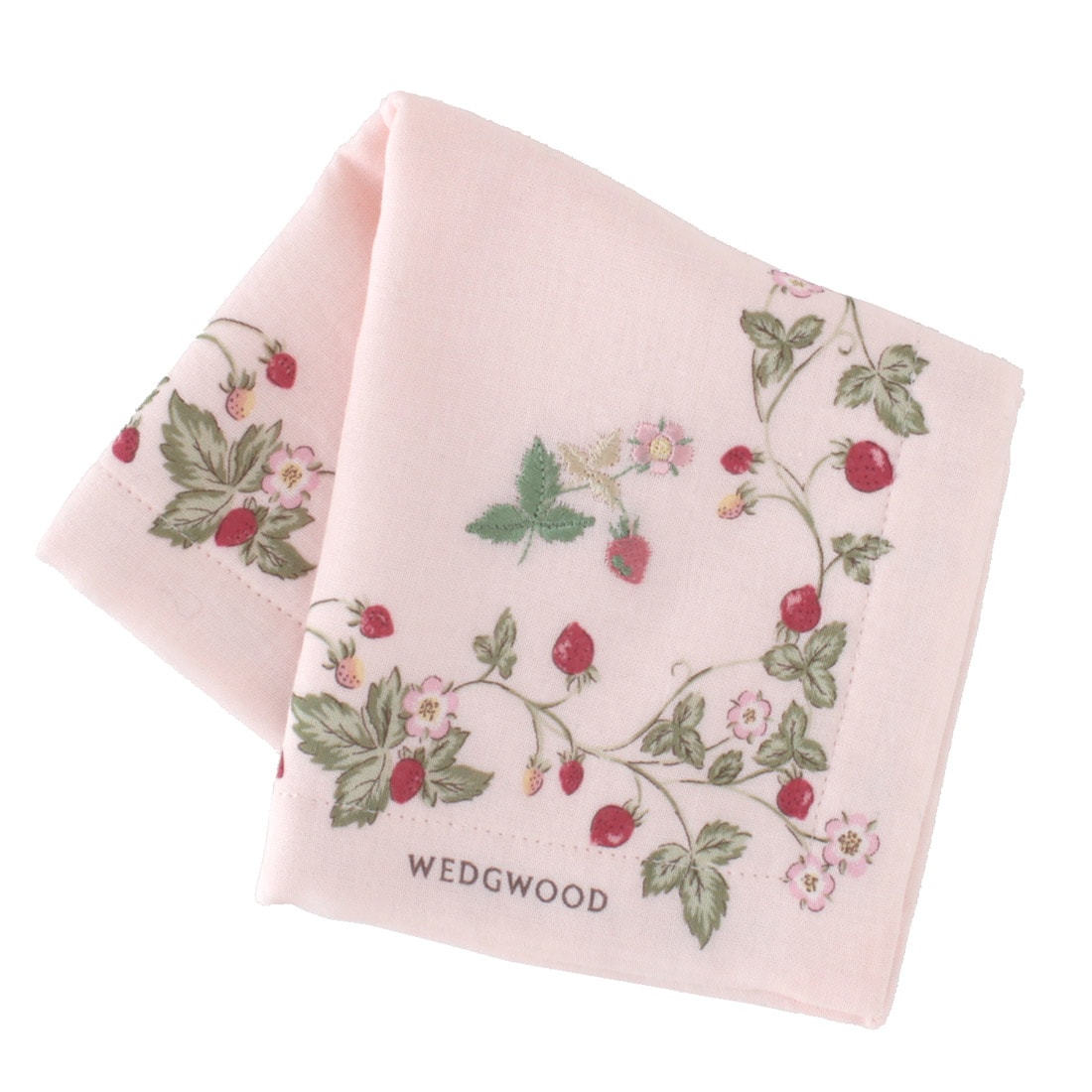 ウェッジウッド タオルハンカチ ワイルドストロベリー 刺繍 ピンク 【WEDGWOOD】