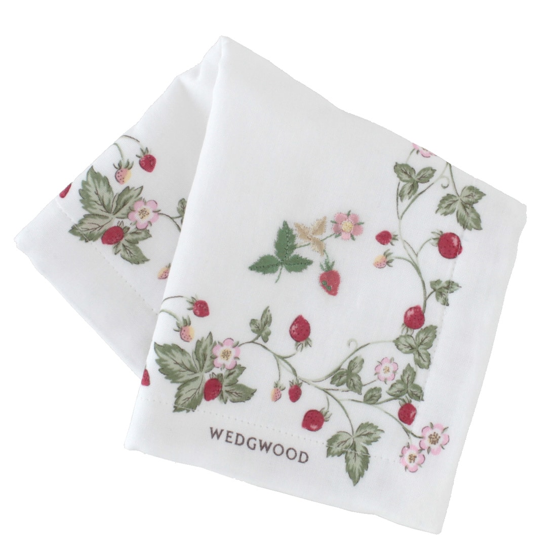 ウェッジウッド 表ガーゼ・裏タオルハンカチ ワイルドストロベリー ホワイト 【WEDGWOOD】