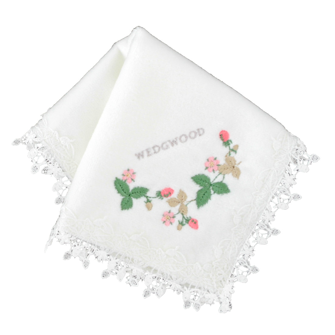 ウェッジウッド 大判 レース 大判 タオルハンカチ(約28cm) ワイルドストロベリー ホワイト 【WEDGWOOD】