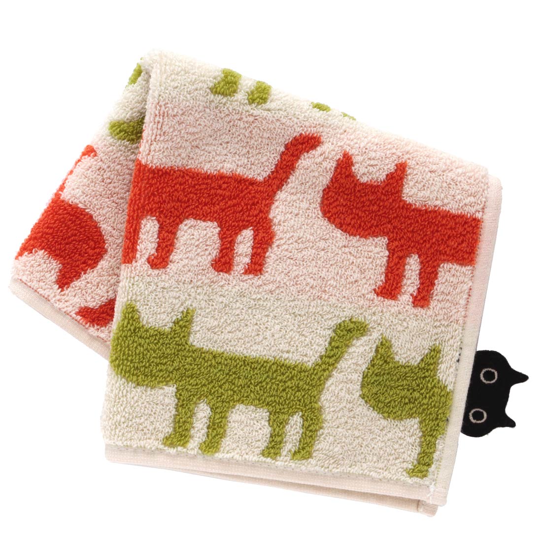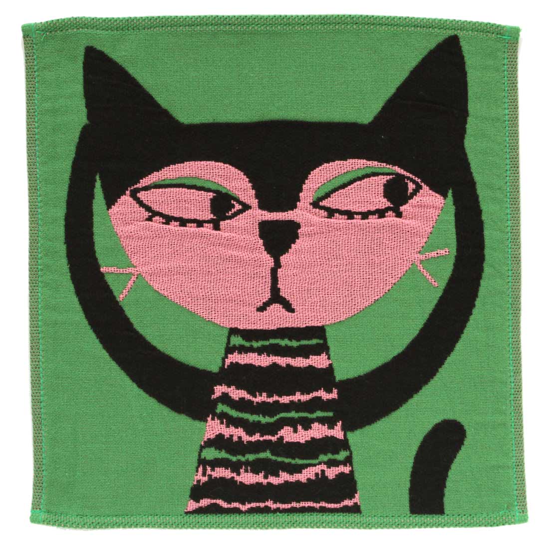 12月26日 午前0時 販売開始【SALE ¥880→¥660】25%OFF! アツコマタノ タオルハンカチ シルエット猫 グリーン