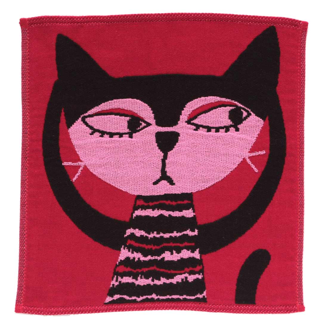 アツコマタノ タオルハンカチ <子猫のいる庭> レッド 【Atsuko Matano】