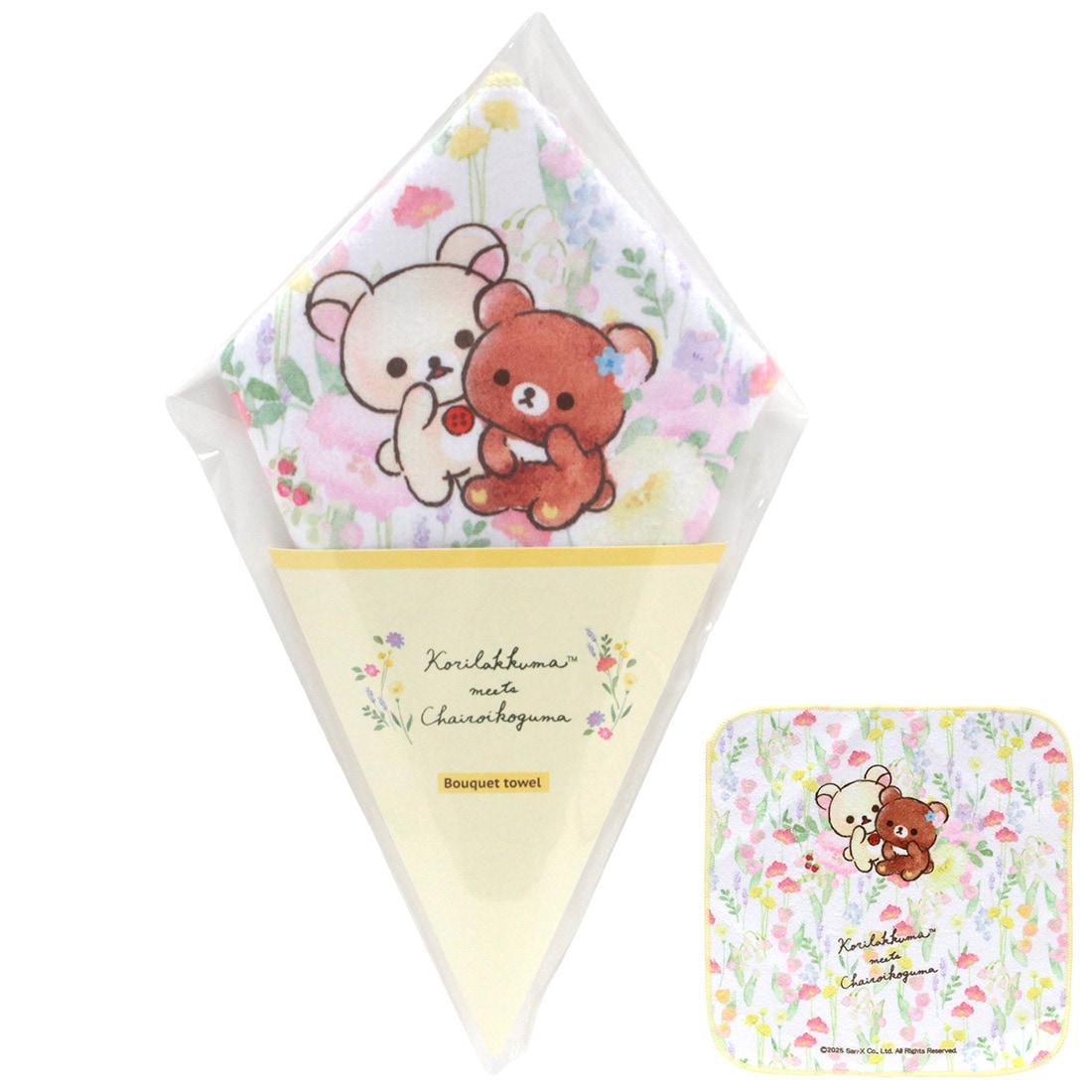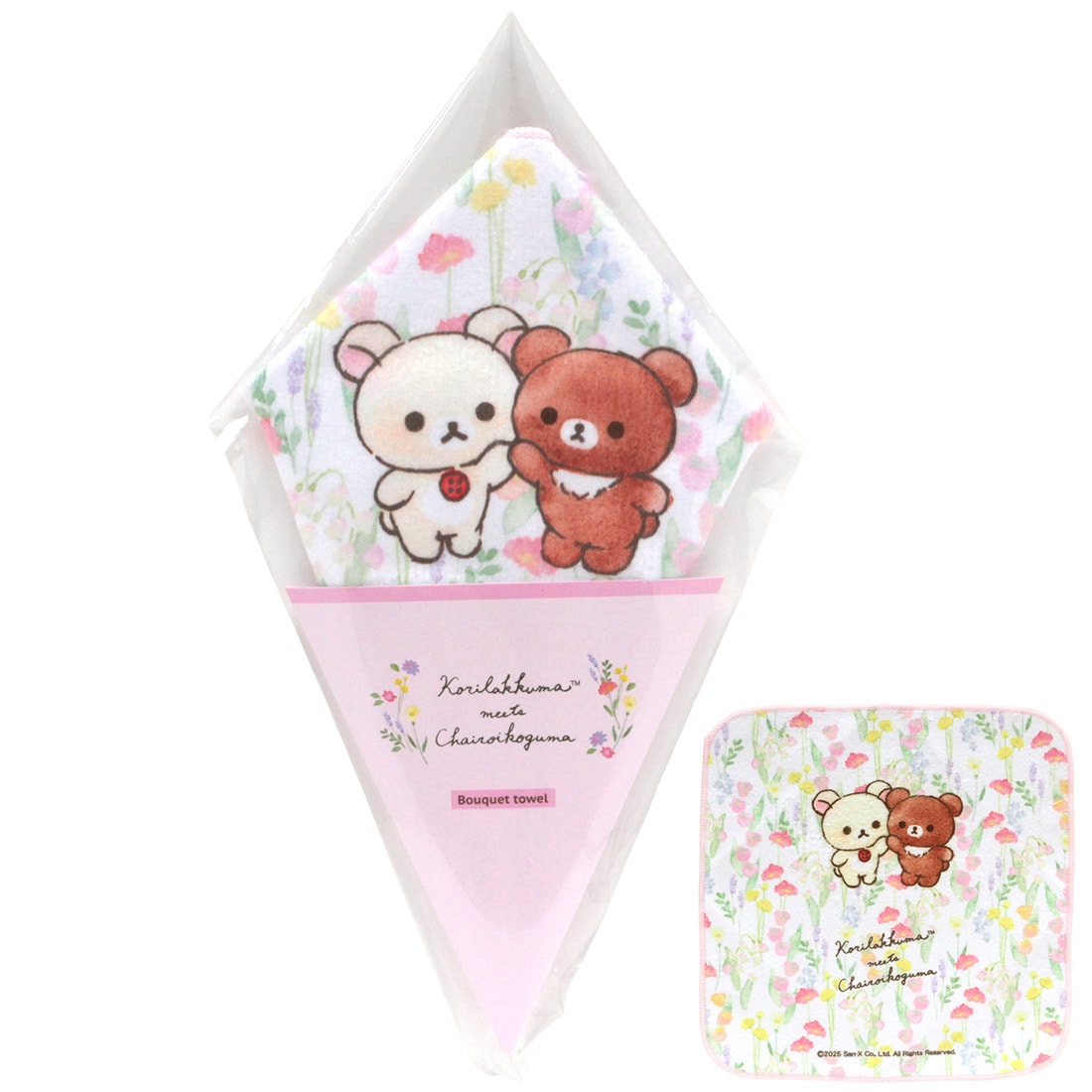 リラックマ ブーケタオルハンカチ コリラックマとチャイロイコグマ ピンク
