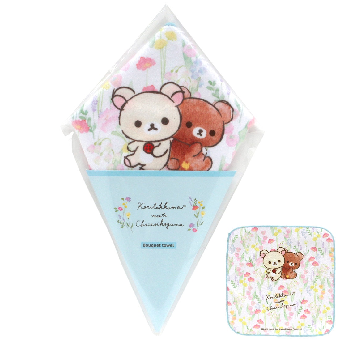 リラックマ ブーケタオルハンカチ コリラックマとチャイロイコグマ ブルー