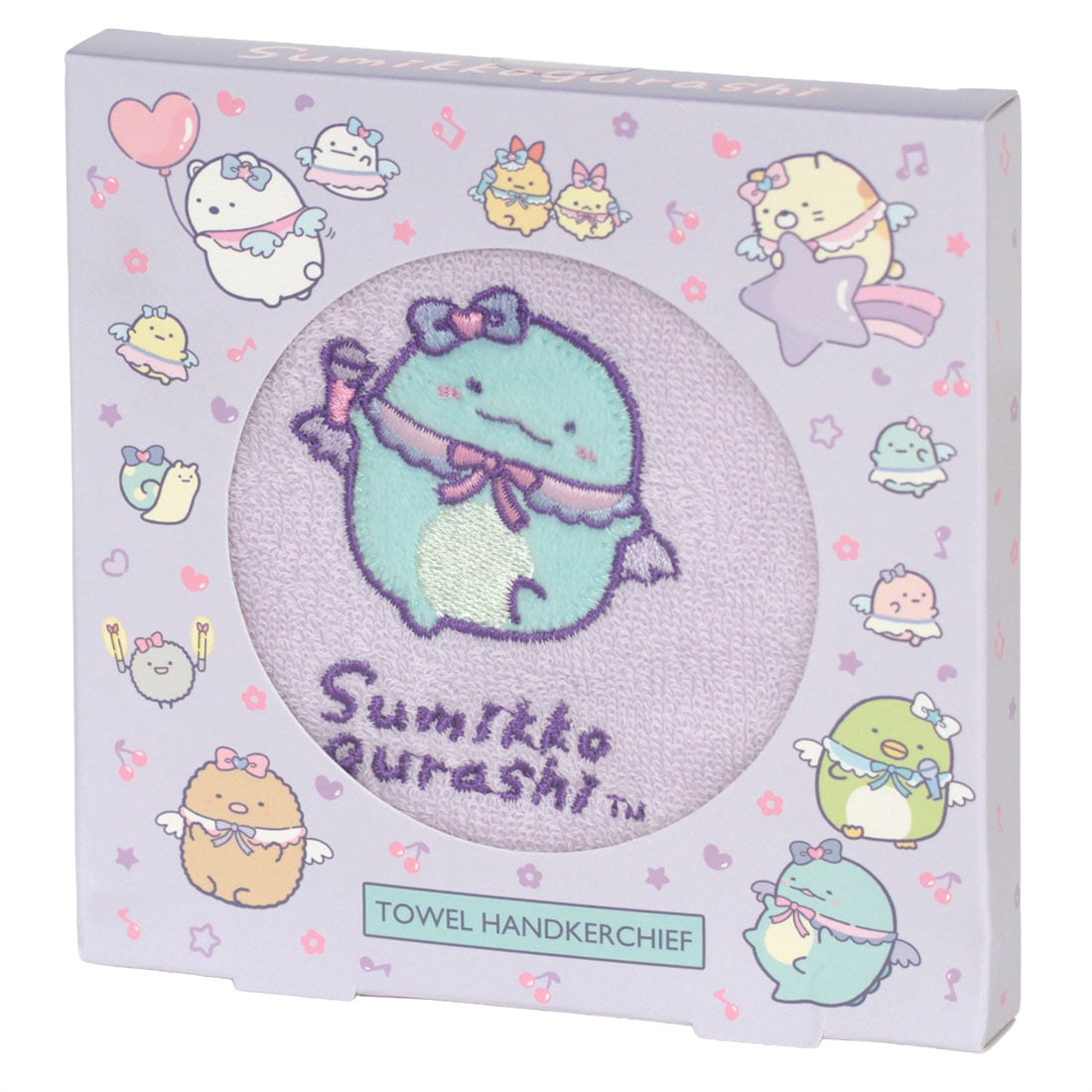 すみっコぐらし タオルハンカチ(パッケージ入り)しっぽず応援 とかげ パープル