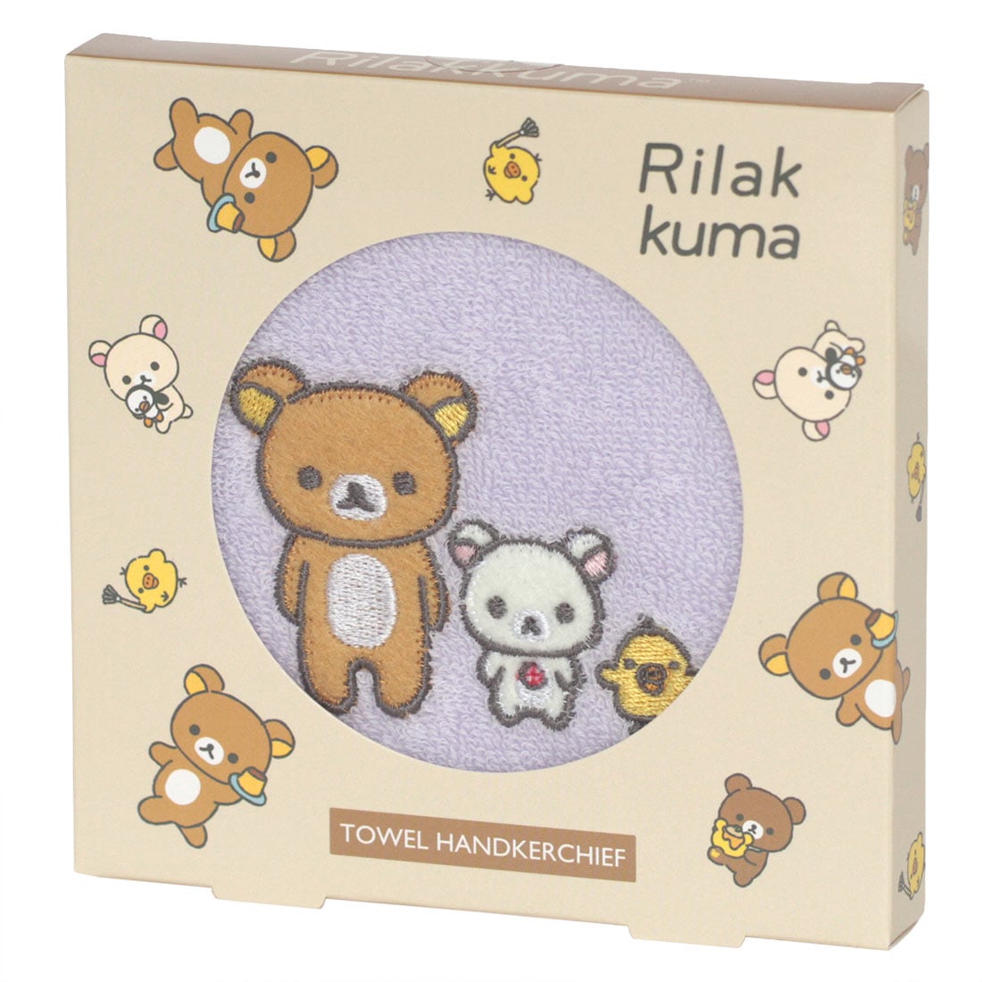 リラックマ タオルハンカチ(パッケージ入り)リラックマとコリラックマとキイロイトリ パープル