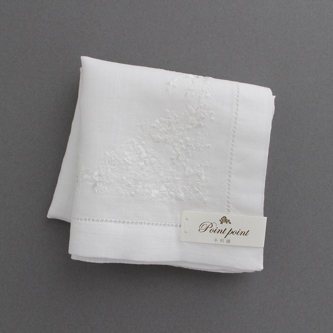 ポワンポワン ベトナム手刺繍ハンカチ 6221-10 ホワイト