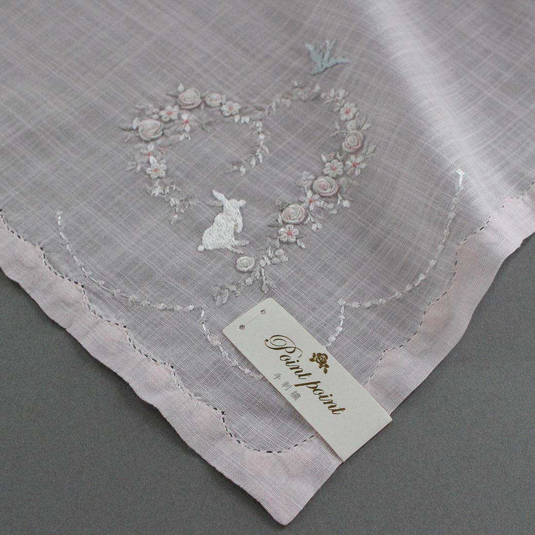 ポワンポワン ベトナム手刺繍ハンカチ 6223-10 ホワイト