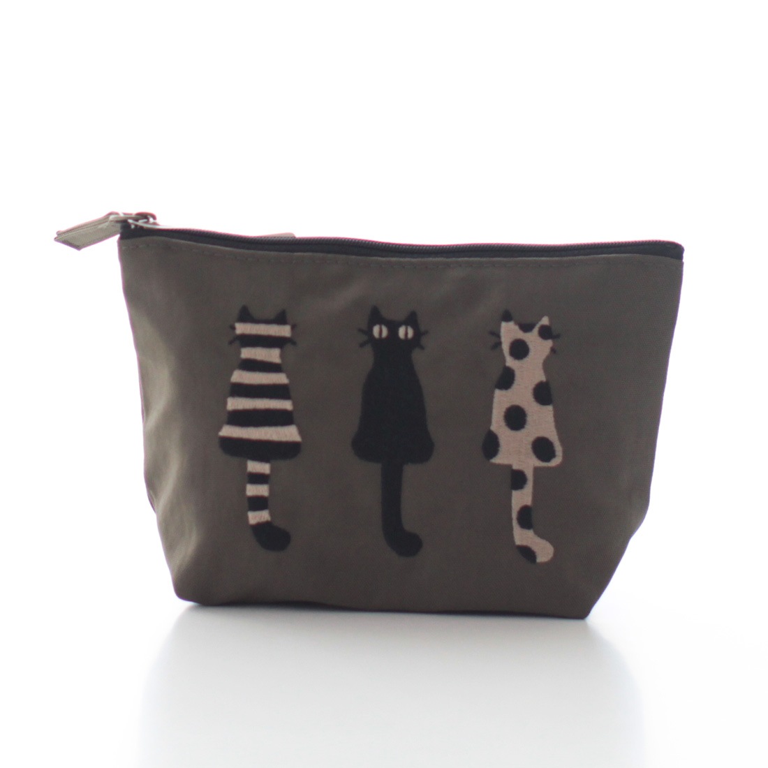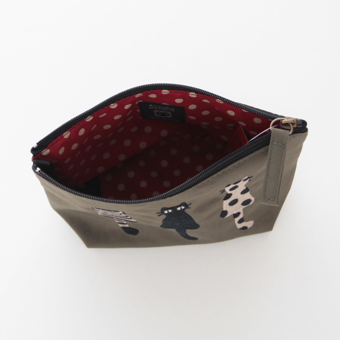 アツコマタノ 刺繍プラップポーチ 仲良し猫 カーキ 【Atsuko Matano】