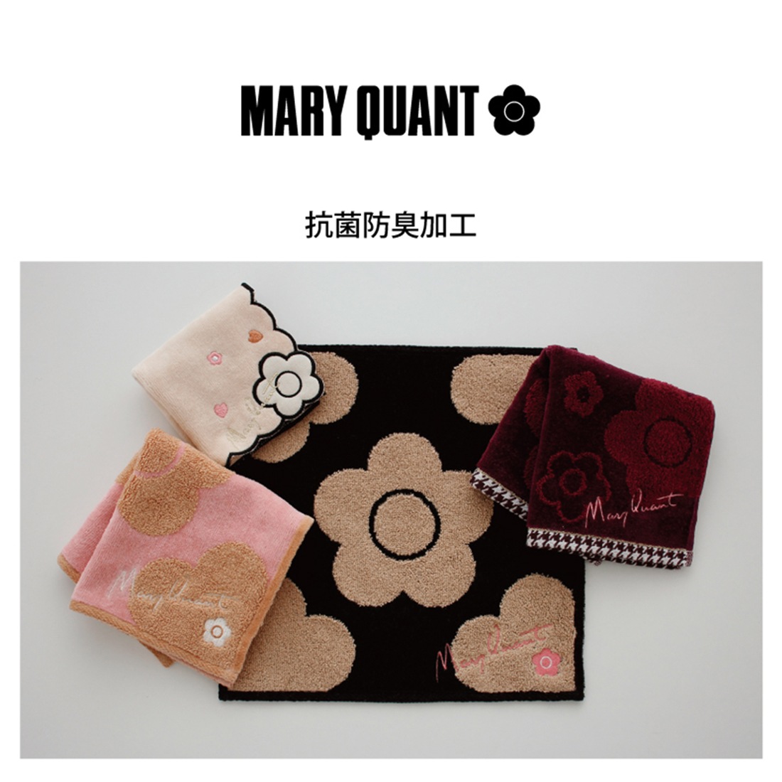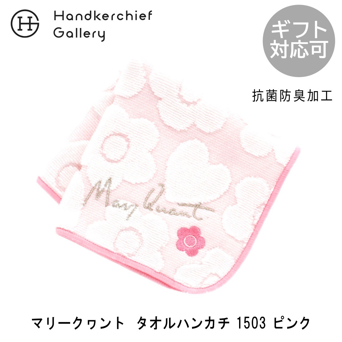 マリークヮント 綿モール糸使用 タオルハンカチ レトロカラー ピンク 【MARY QUANT マリークワント マリクワ】