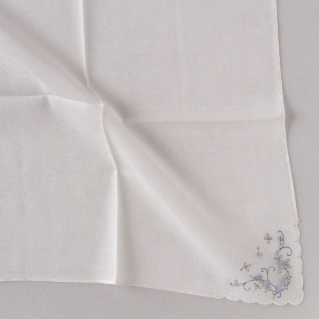 2重ガーゼのハンカチです。コーナーにはスカラップ刺繍を施しエレガントな印象に仕上げました。