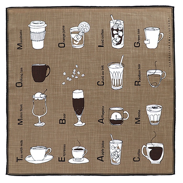 メンズ プリントハンカチ カフェドリンク ブラウン 【CLASSICS the Small Luxury(クラシクス・ザ・スモールラグジュアリ)】
