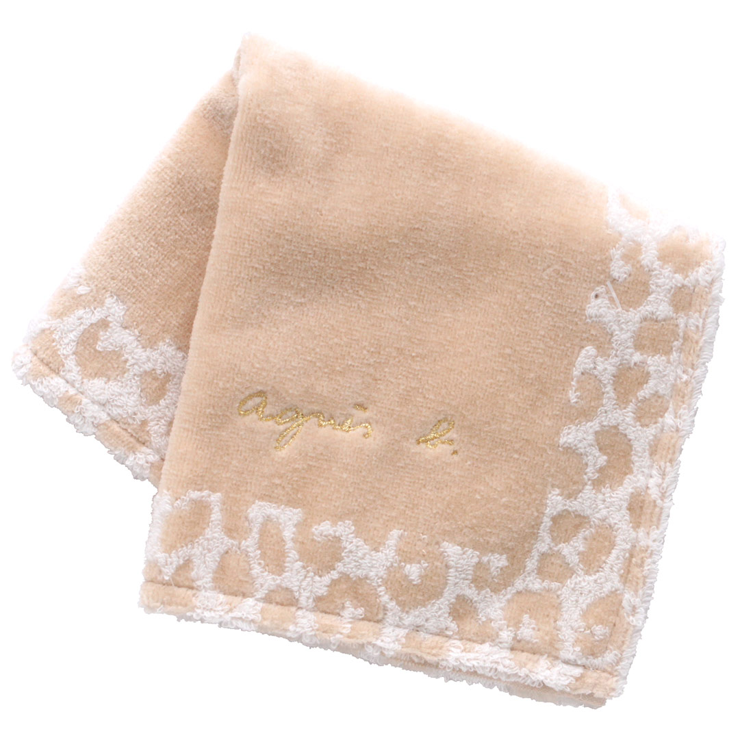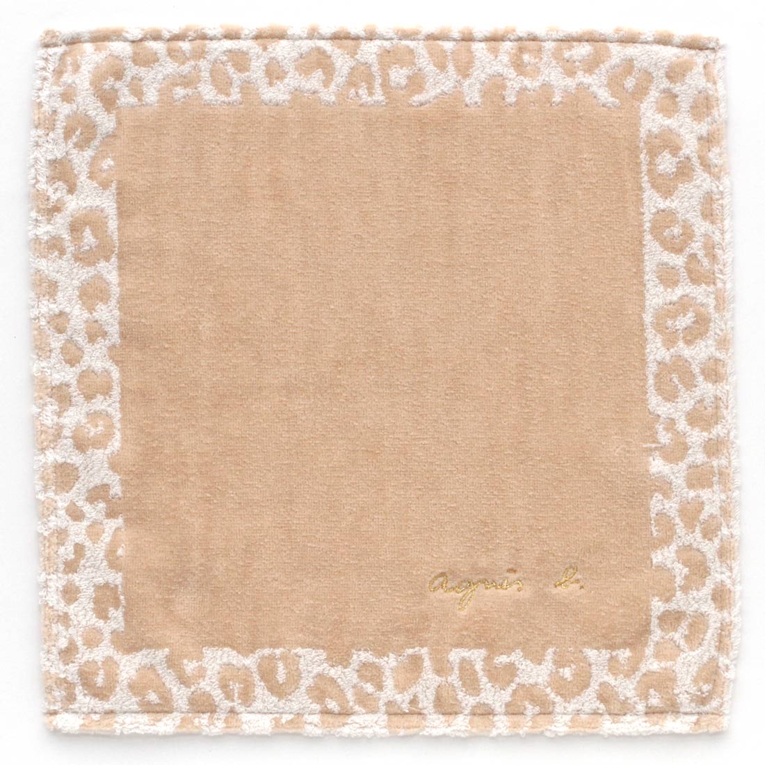 アニエスベー 大判 タオルハンカチ(約28cm) ロゴ レオパード  ベージュ 【agnes b】
