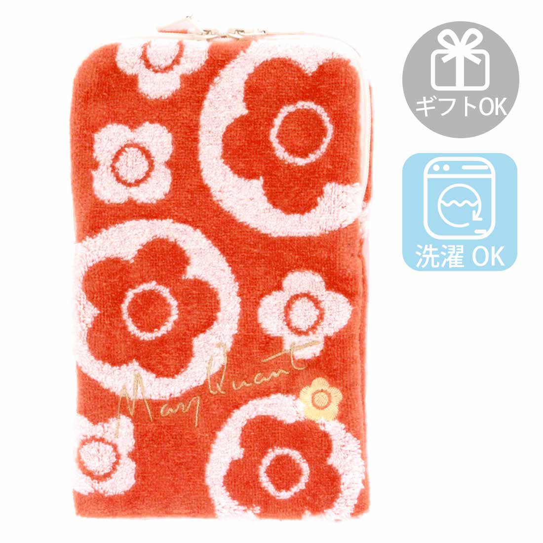 マリークワント 大判 タオルハンカチ(28cm)(パッケージ入り)スパンコール刺繍 レッド 【MARY QUANT マリクワ】