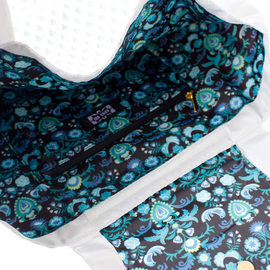 外観はベーシックなデザインに仕上げ、内側の裏地には華やかなプリントを施しています。
