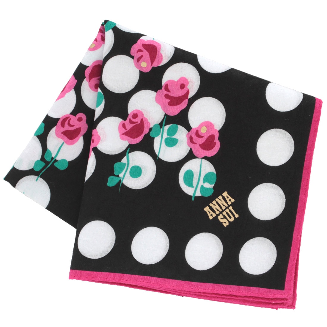 アナ スイ 大判 プリントハンカチ(58cm)ローズドット ピンク 【アナスイ ANNA SUI】