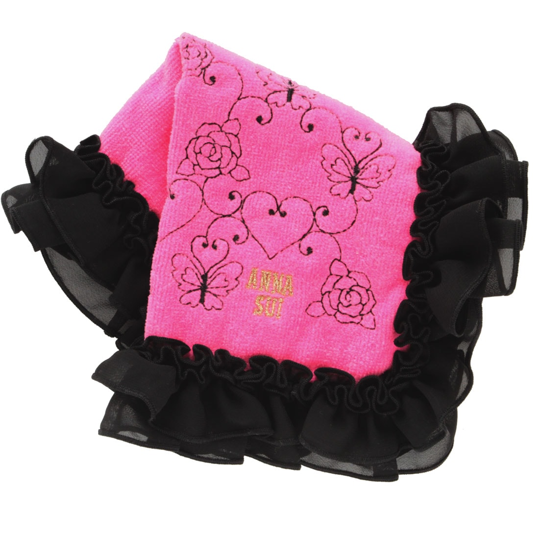 アナ スイ プリントハンカチ リボンローズ柄 ブラック 【アナスイ ANNA SUI】