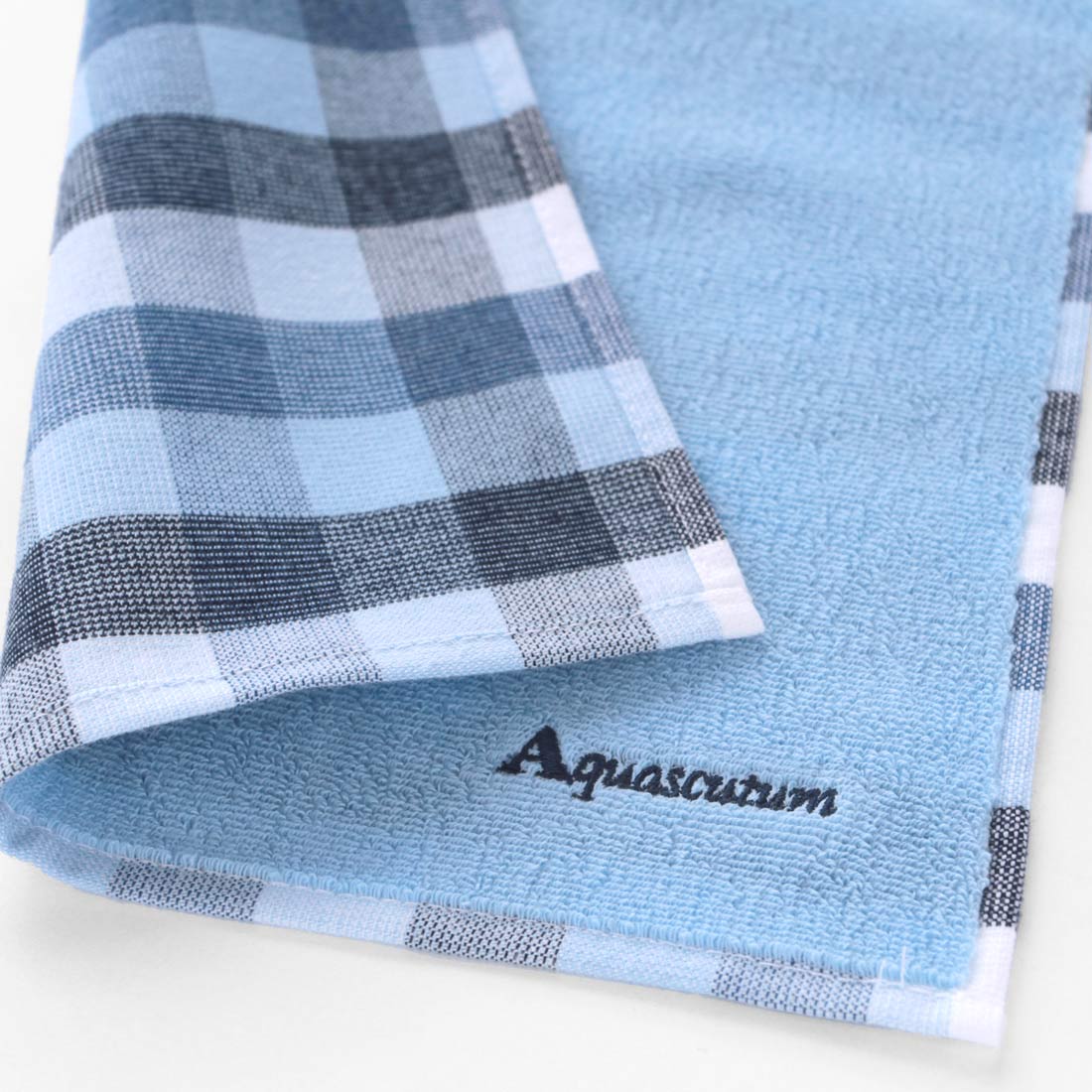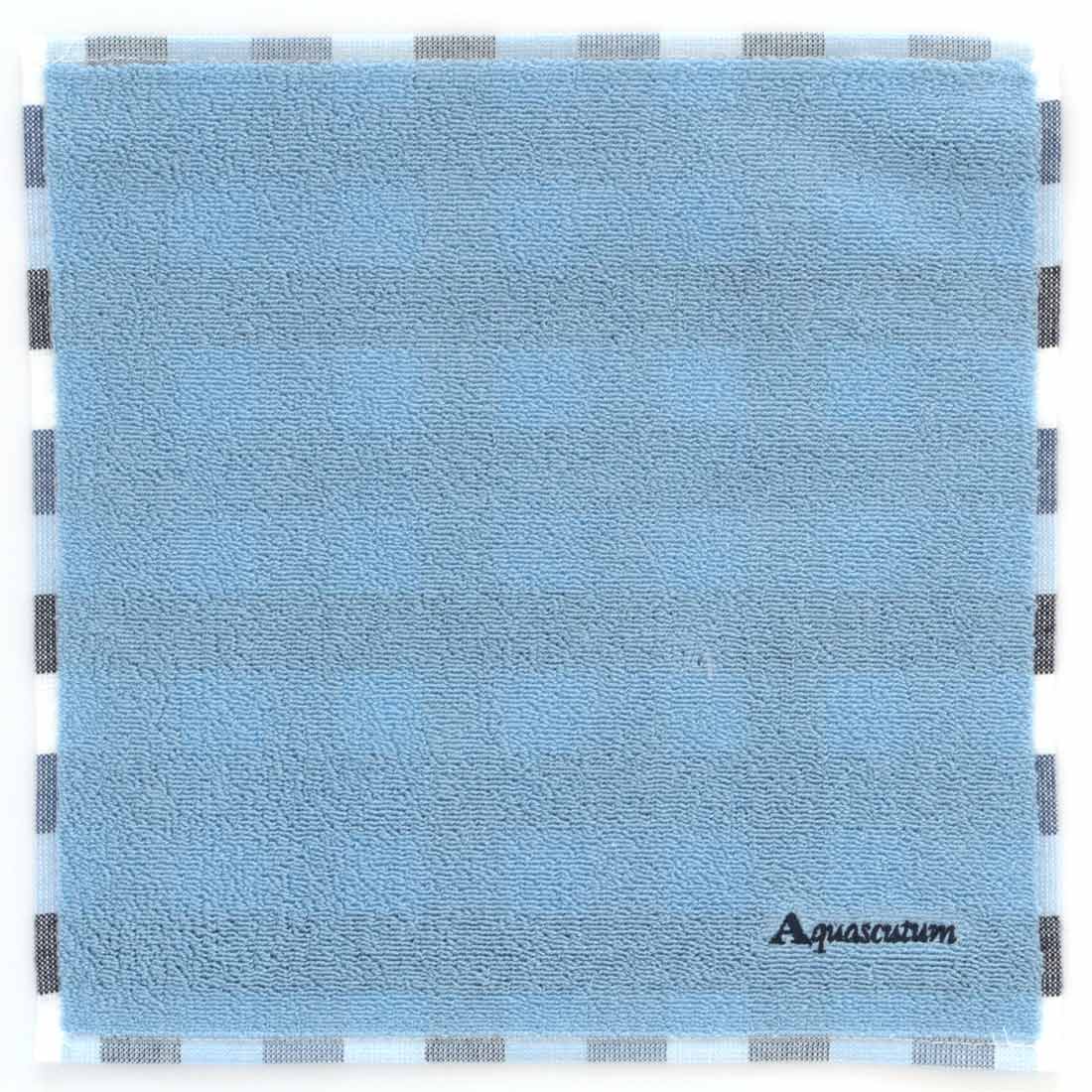アクアスキュータム メンズ タオルハンカチ チェック 兵隊刺繍 ブルー 【Aquascutum】
