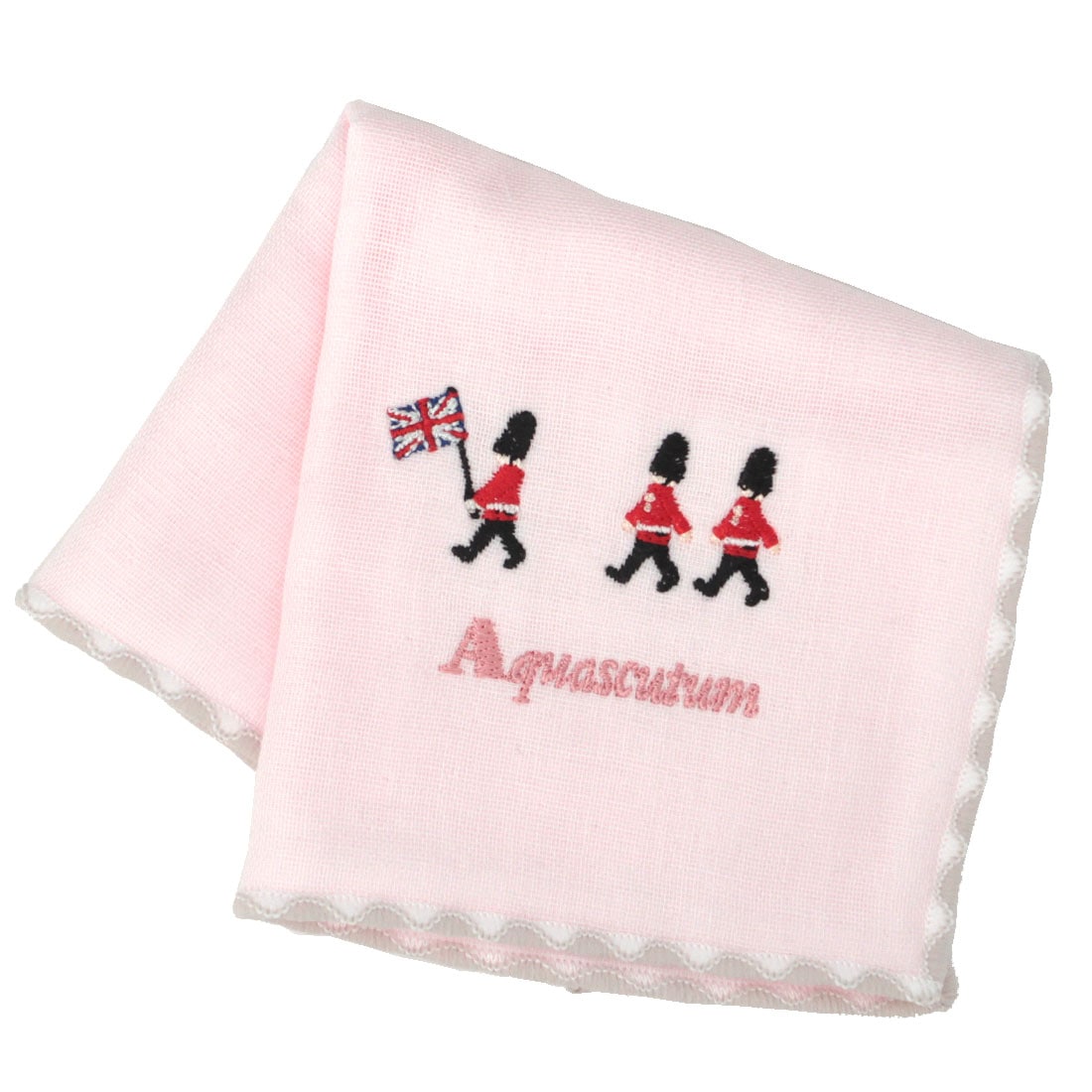 アクアスキュータム ミニ ガーゼハンカチ(20cm)兵隊刺繍 ピンク 【Aquascutum】