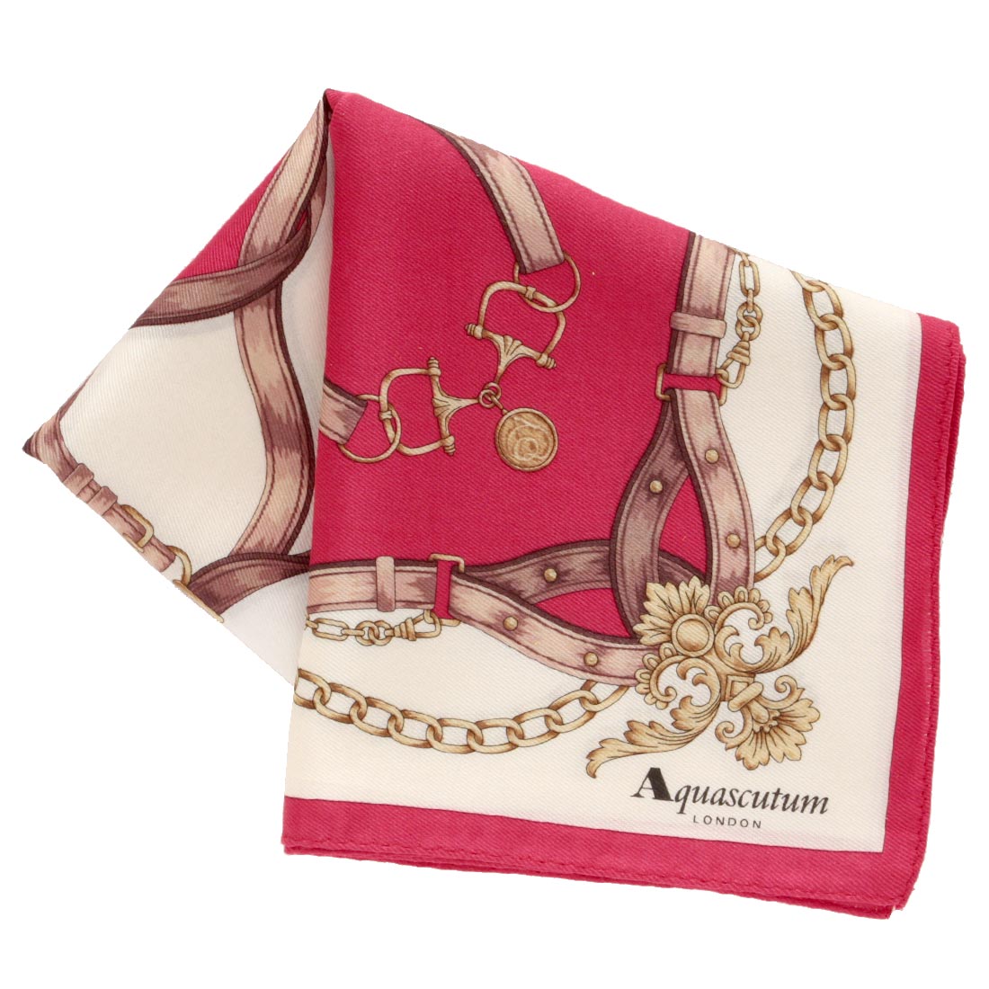 アクアスキュータム 大判 綿シルクハンカチ(58cm)ベルト柄&メタルモチーフ ピンク 【Aquascutum】