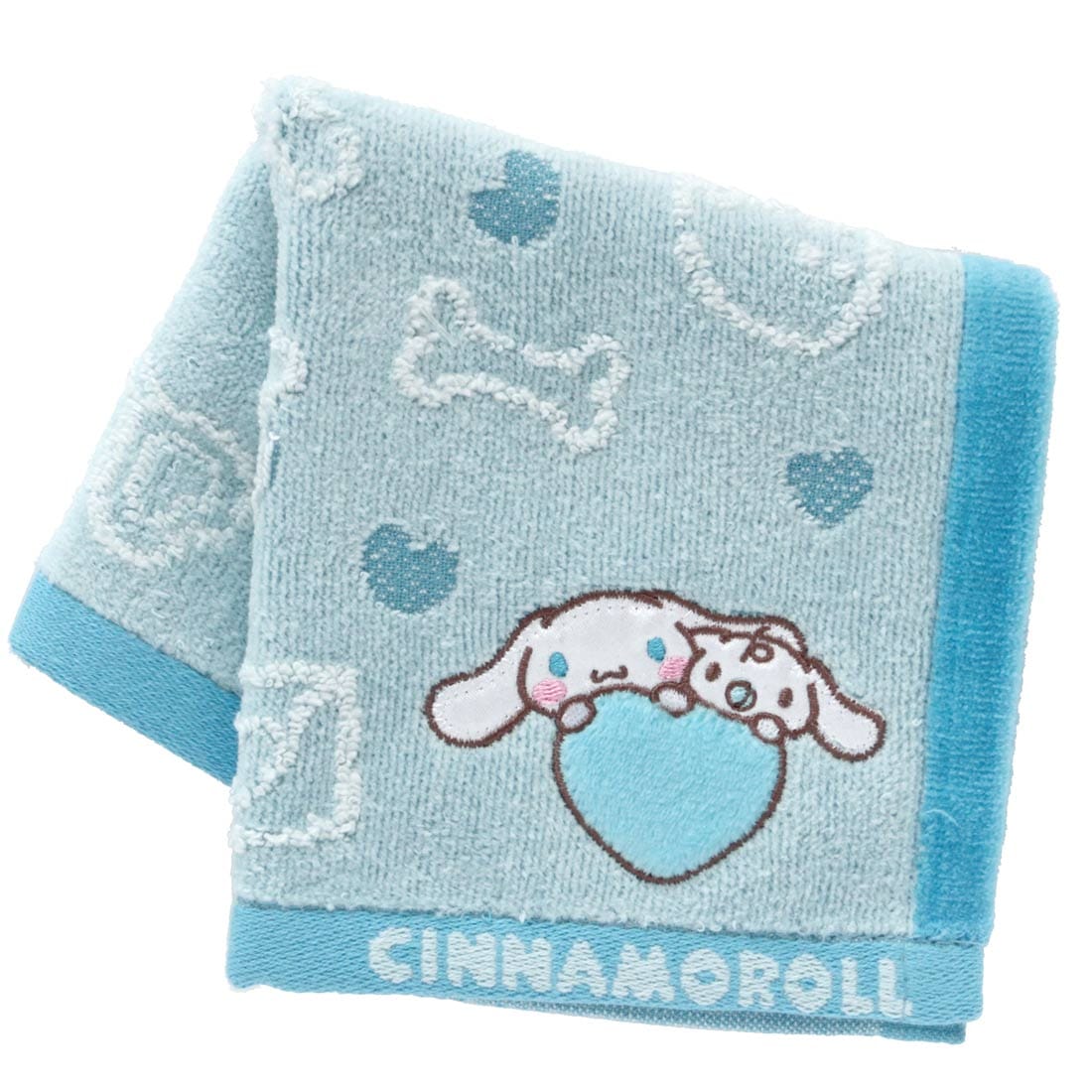シナモンロール タオルハンカチ ハートアップリケ ブルー