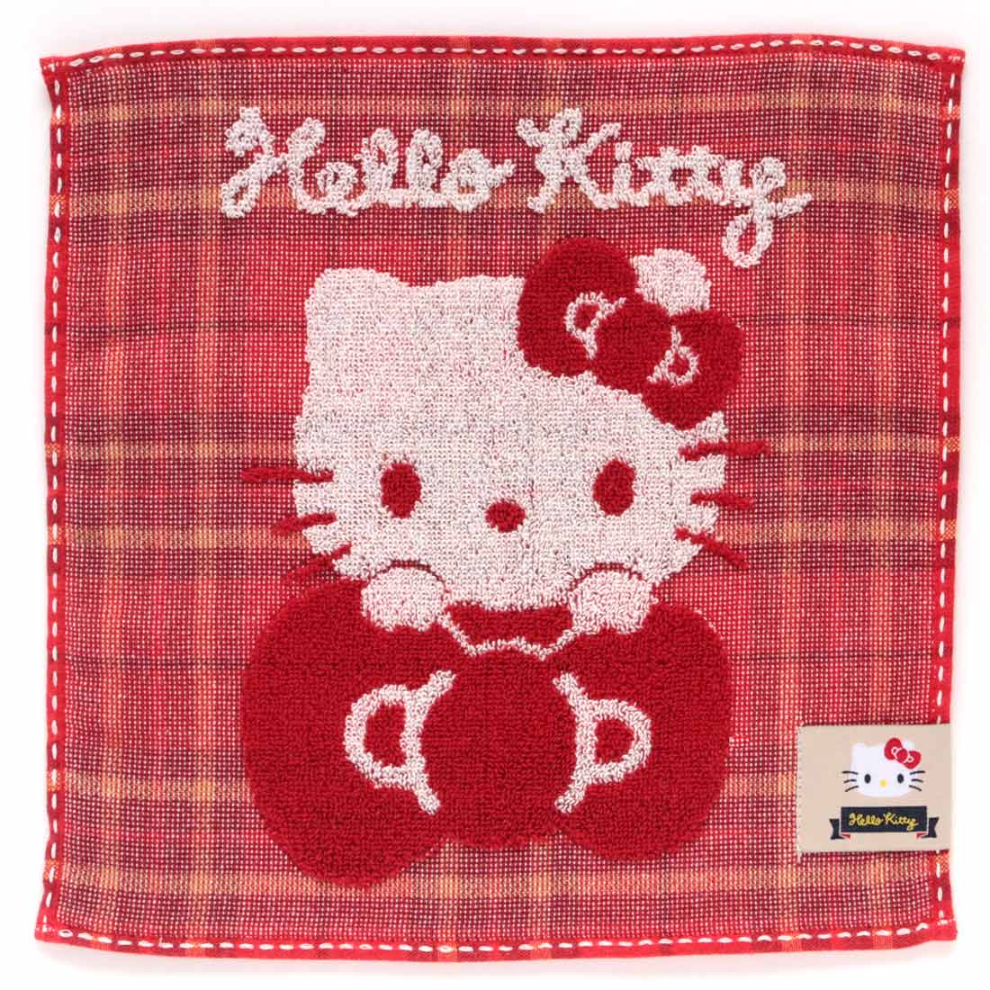 ハローキティ タオルハンカチ タータンチェック レッド