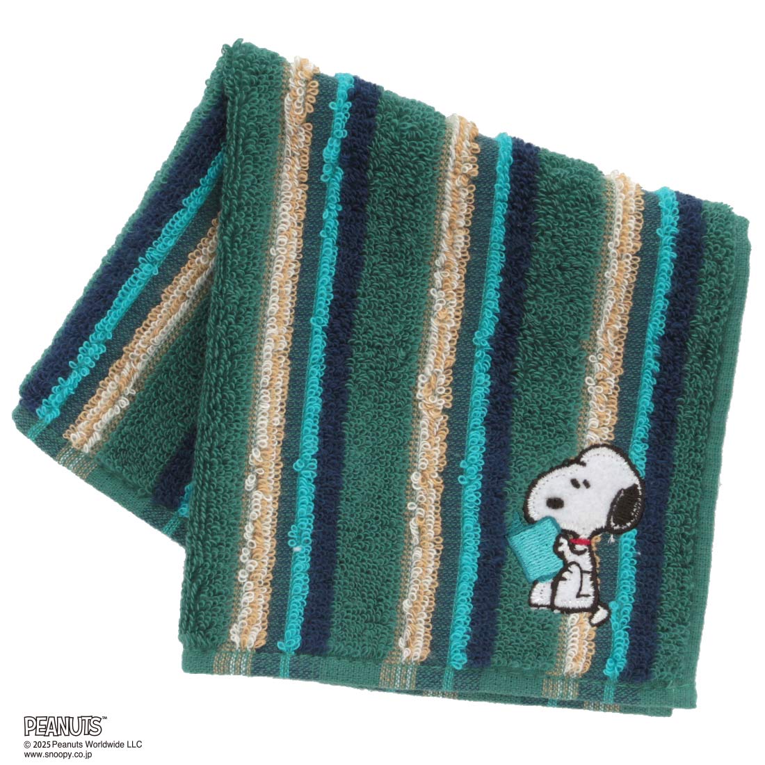 スヌーピー メンズ タオルハンカチ スタイリッシュボーダー 読書 グリーン 【PEANUTS】