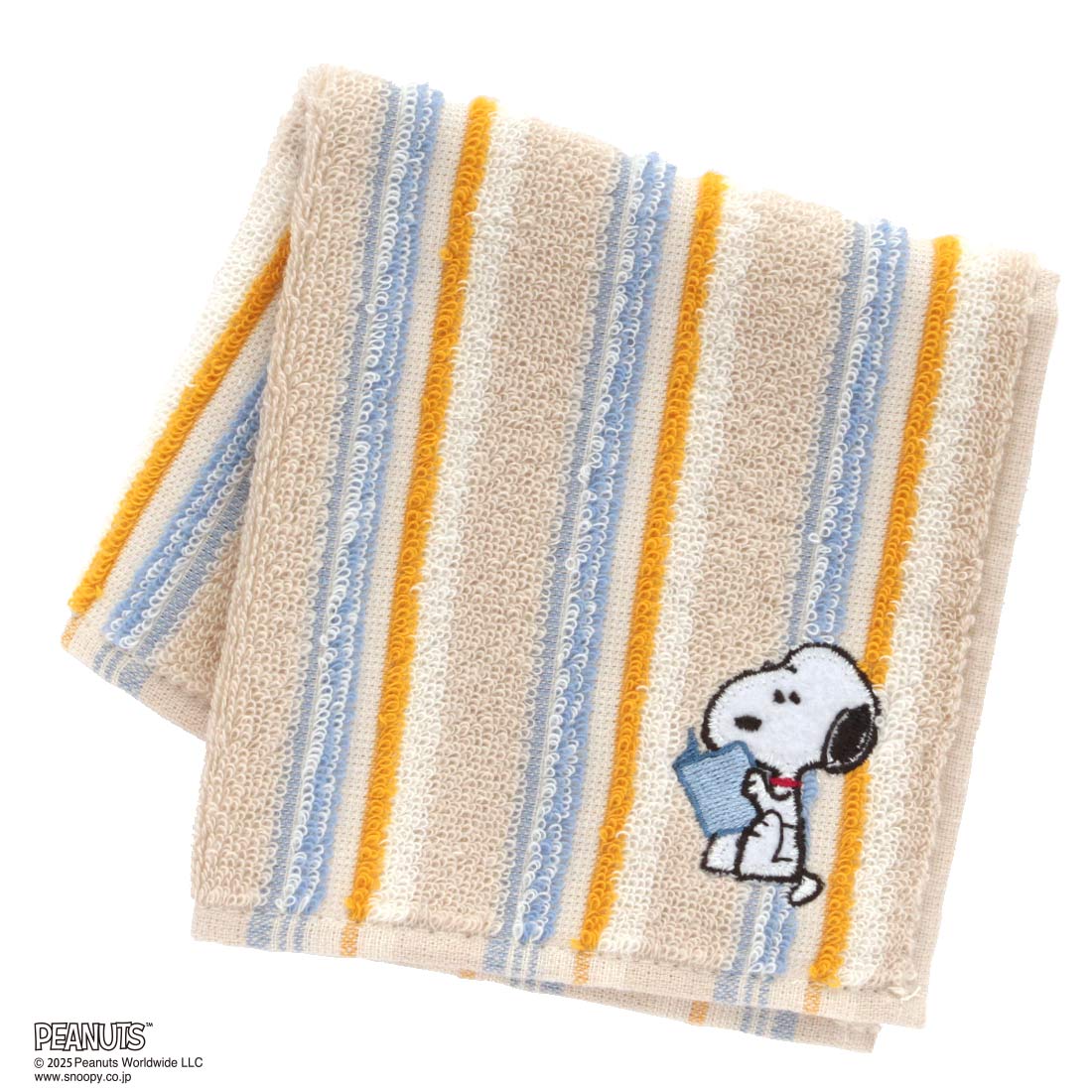 スヌーピー メンズ タオルハンカチ スタイリッシュボーダー 読書 ベージュ 【PEANUTS】