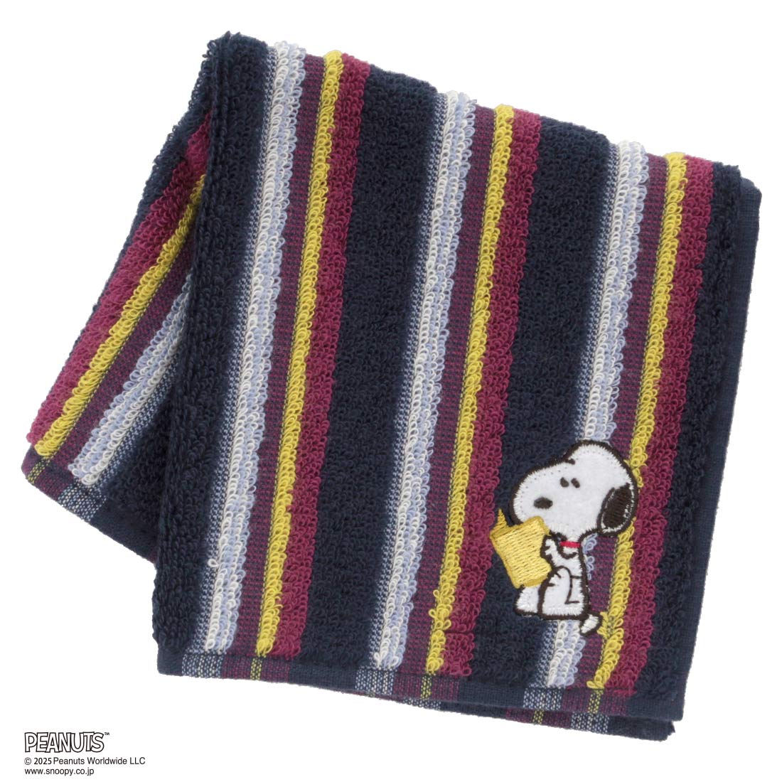 スヌーピー メンズ タオルハンカチ スタイリッシュボーダー 読書 ネイビー 【PEANUTS】