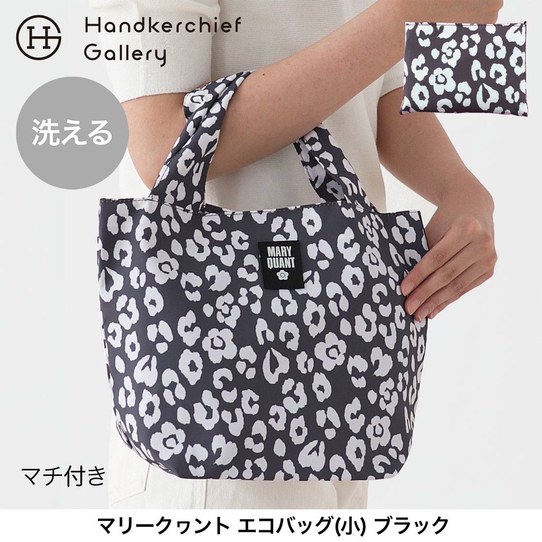 マリークヮント 綿モール糸使用 タオルハンカチ コスメモチーフ ブラック 【MARY QUANT マリークワント マリクワ】