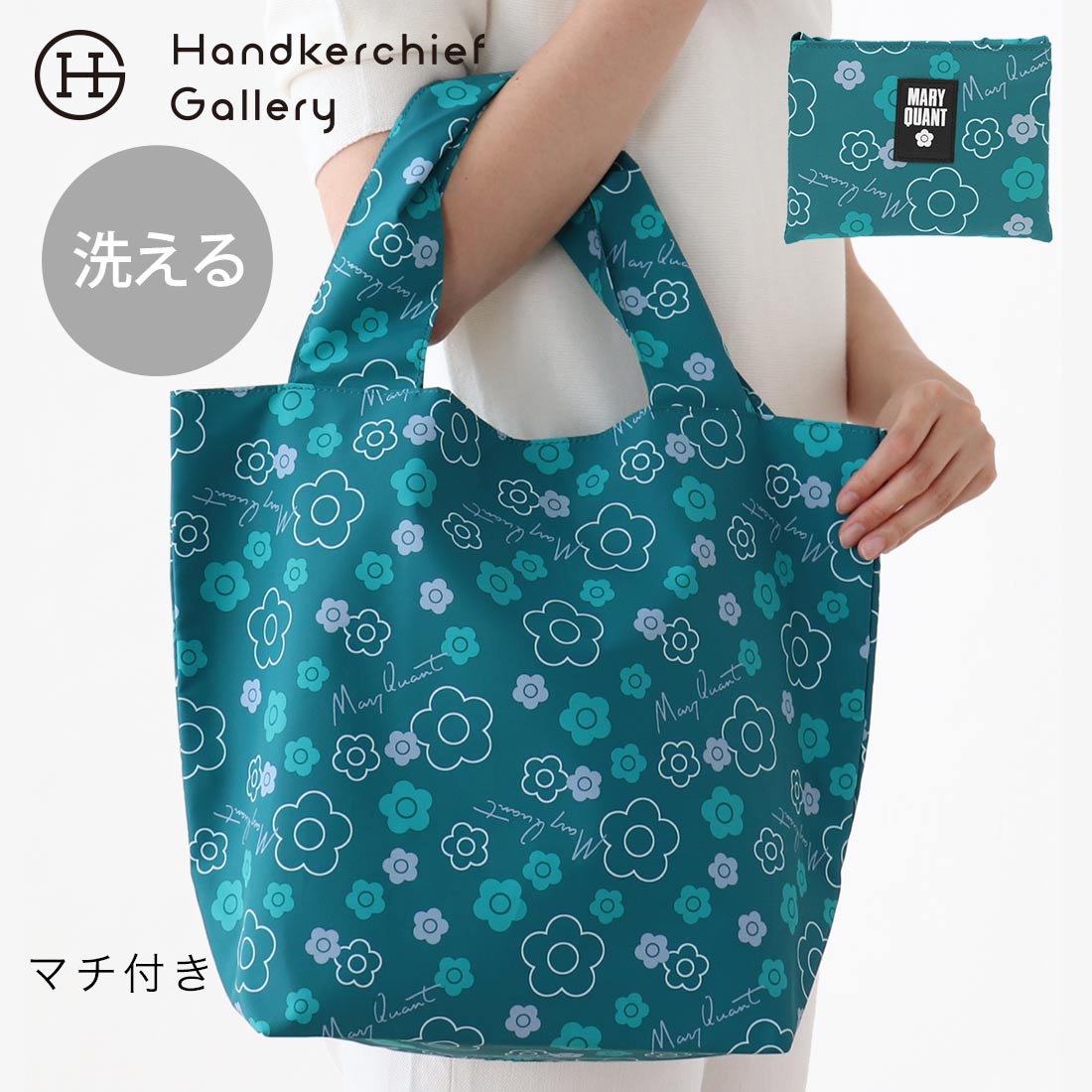 マリークヮント 綿モール糸使用 タオルハンカチ コスメモチーフ グリーン 【MARY QUANT マリークワント マリクワ】