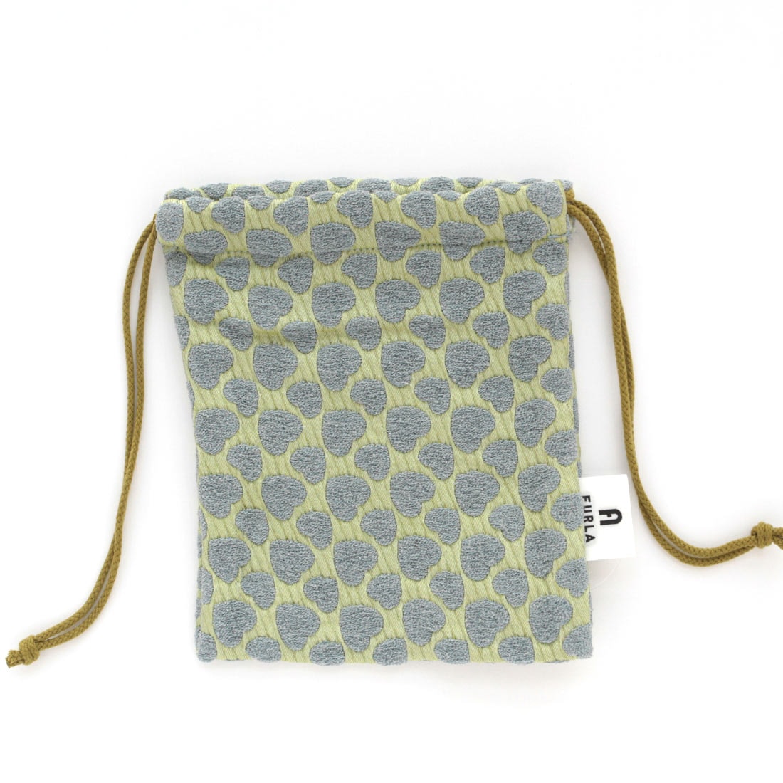 ふっくらと浮き上がるハートが可憐なデザイン。フルラらしいカラーコンビネーションが特徴のユニークな巾着です。