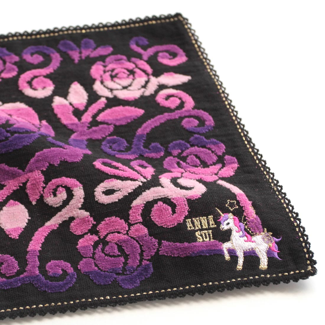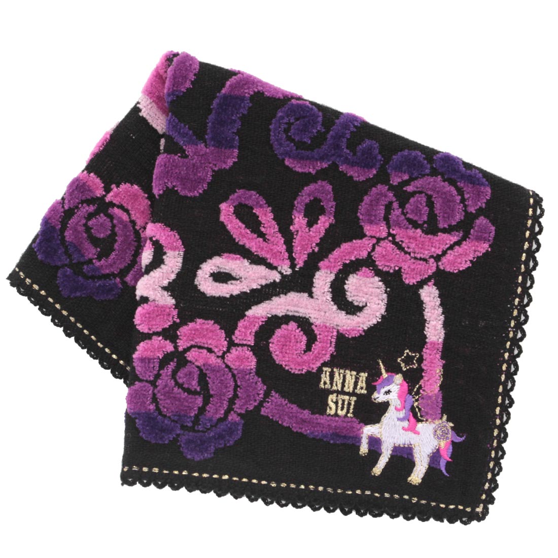 アナ スイ 大判 タオルハンカチ(28cm)干支 ユニコーン刺繍 レッド 【アナスイ ANNA SUI】