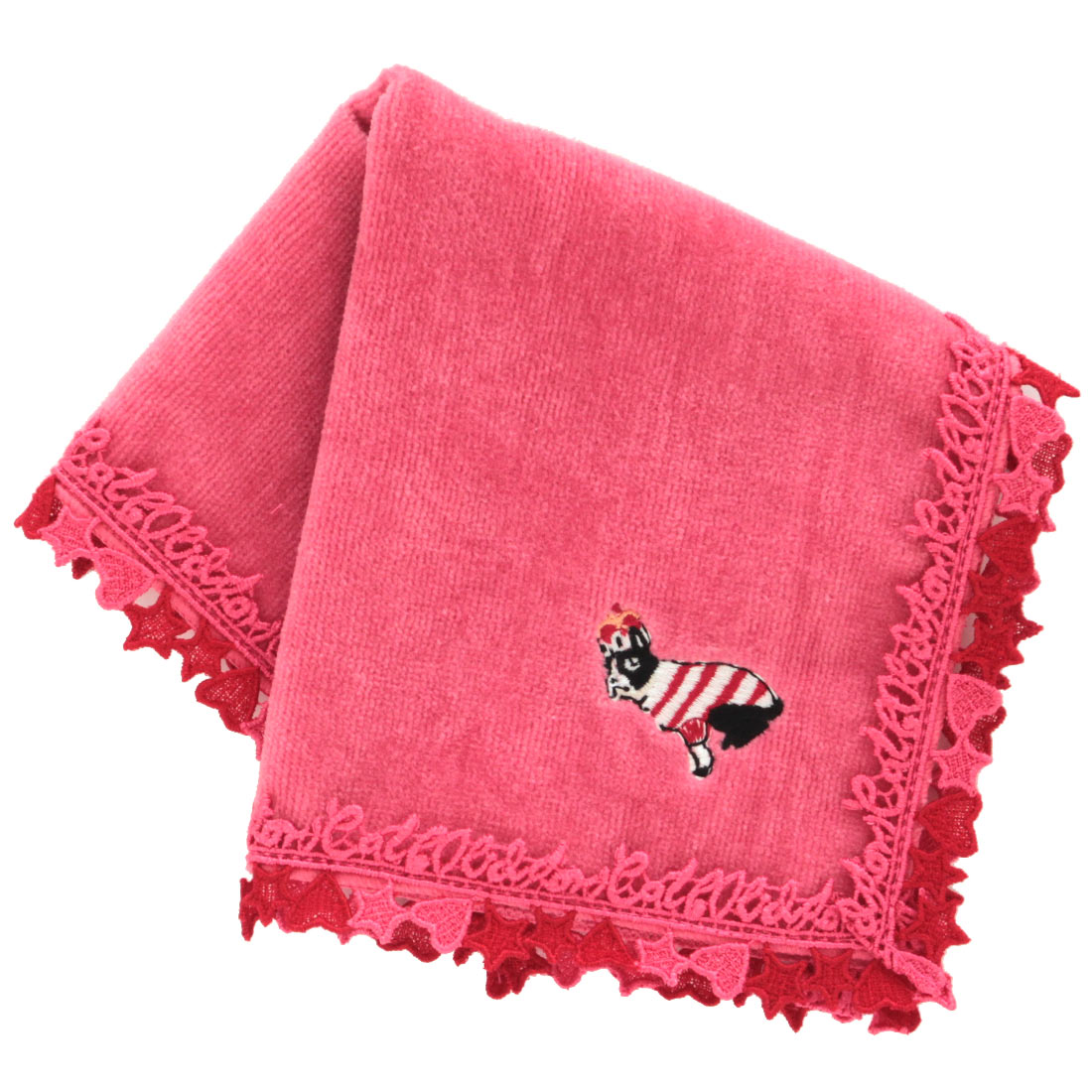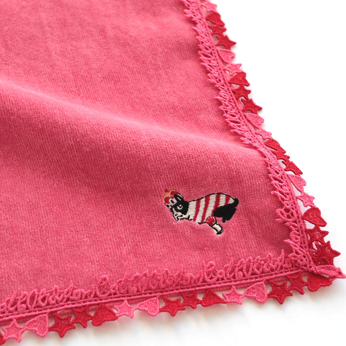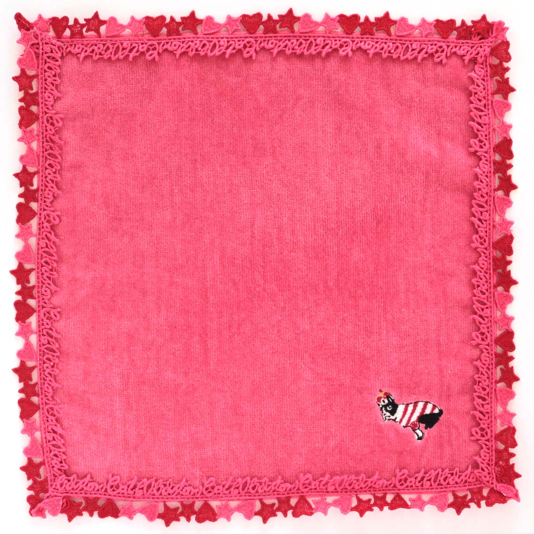 キャス キッドソン 大判 タオルハンカチ(28cm)ロゴ ハート&星柄レース ベージュ【Cath Kidston】