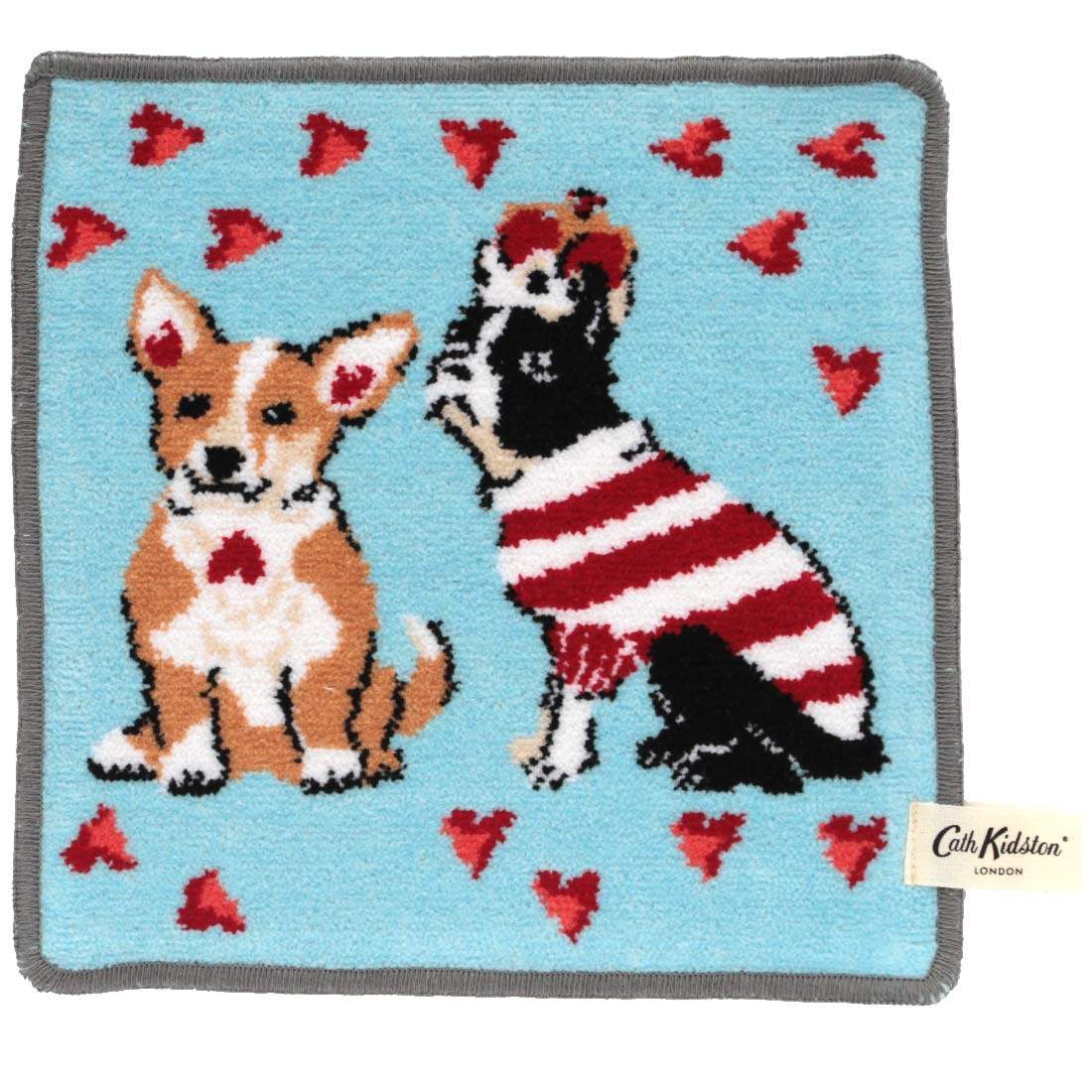 キャス キッドソン 大判 タオルハンカチ(28cm)ロゴ ハート&星柄レース ベージュ【Cath Kidston】