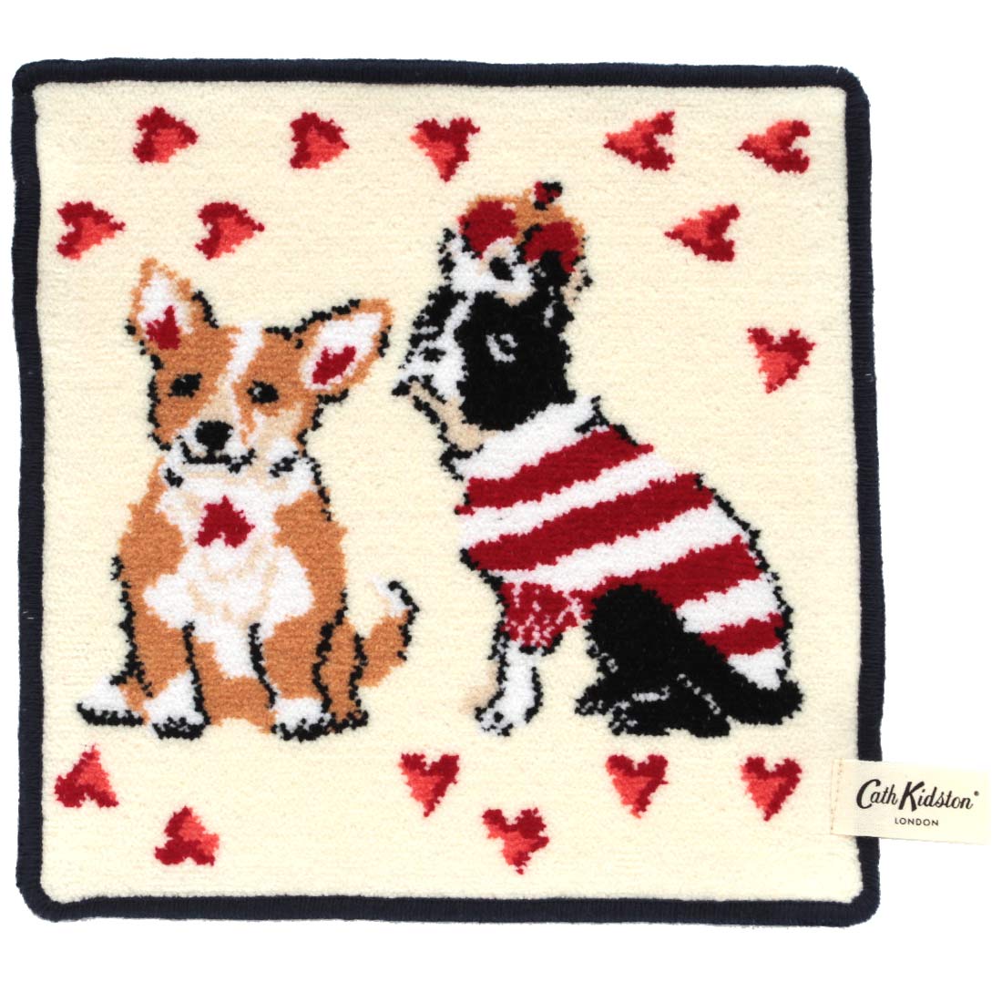 キャス キッドソン 大判 タオルハンカチ(28cm)ロゴ ハート&星柄レース ベージュ【Cath Kidston】