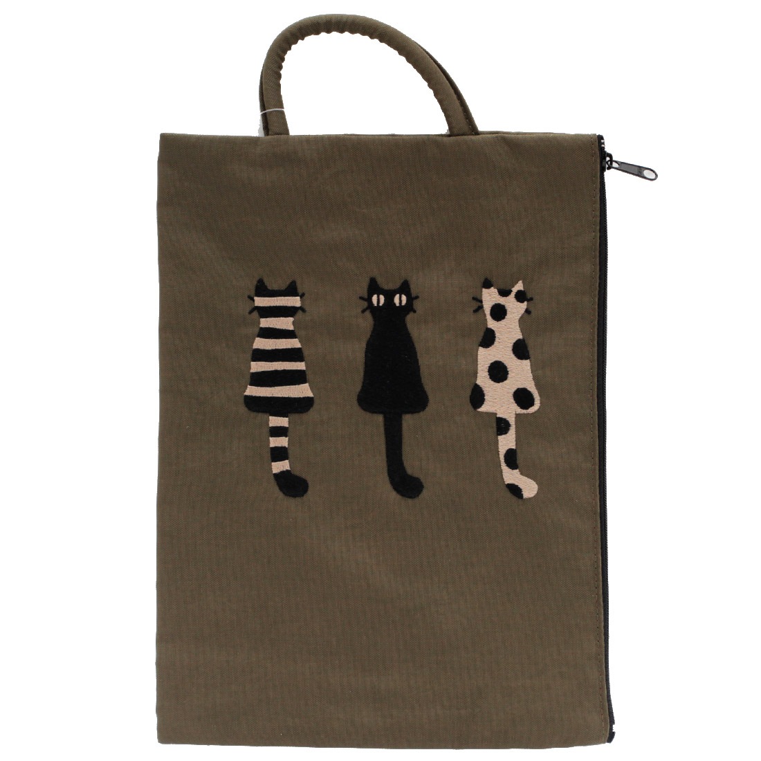 アツコマタノ 刺繍プラップポーチ 仲良し猫 カーキ 【Atsuko Matano】