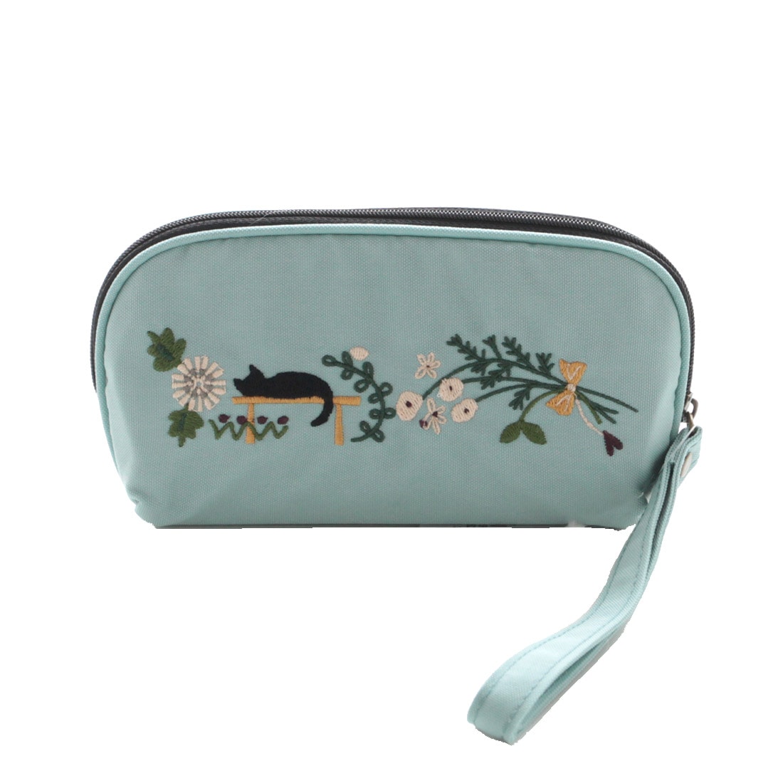 アツコマタノ 刺繍プラップポーチ 仲良し猫 カーキ 【Atsuko Matano】