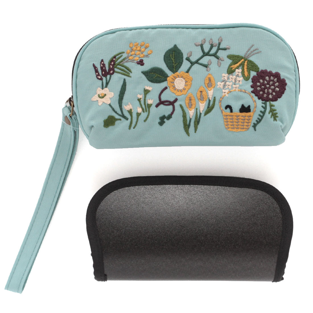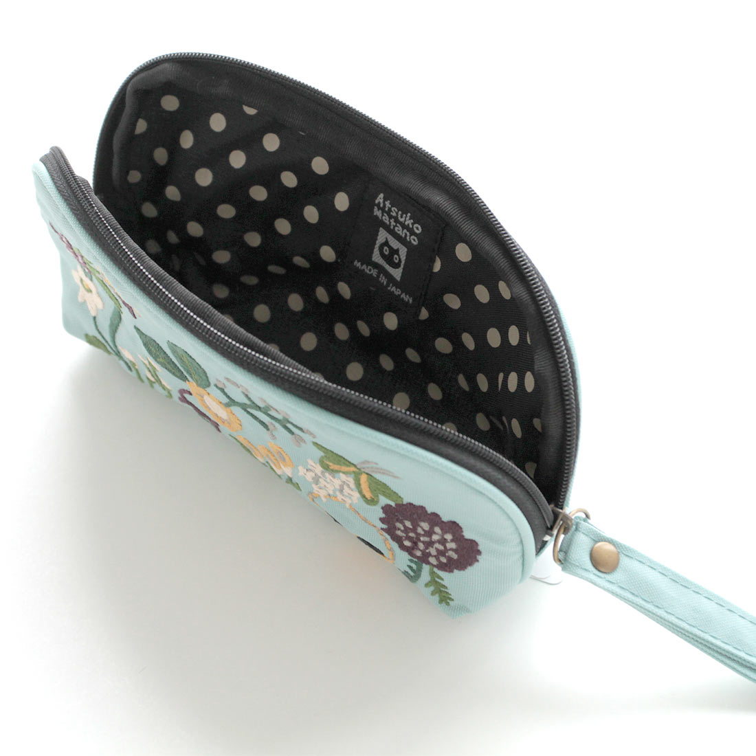 アツコマタノ 刺繍マルチケース(メガネ収納可)ガーデン ブラック 【Atsuko Matano】