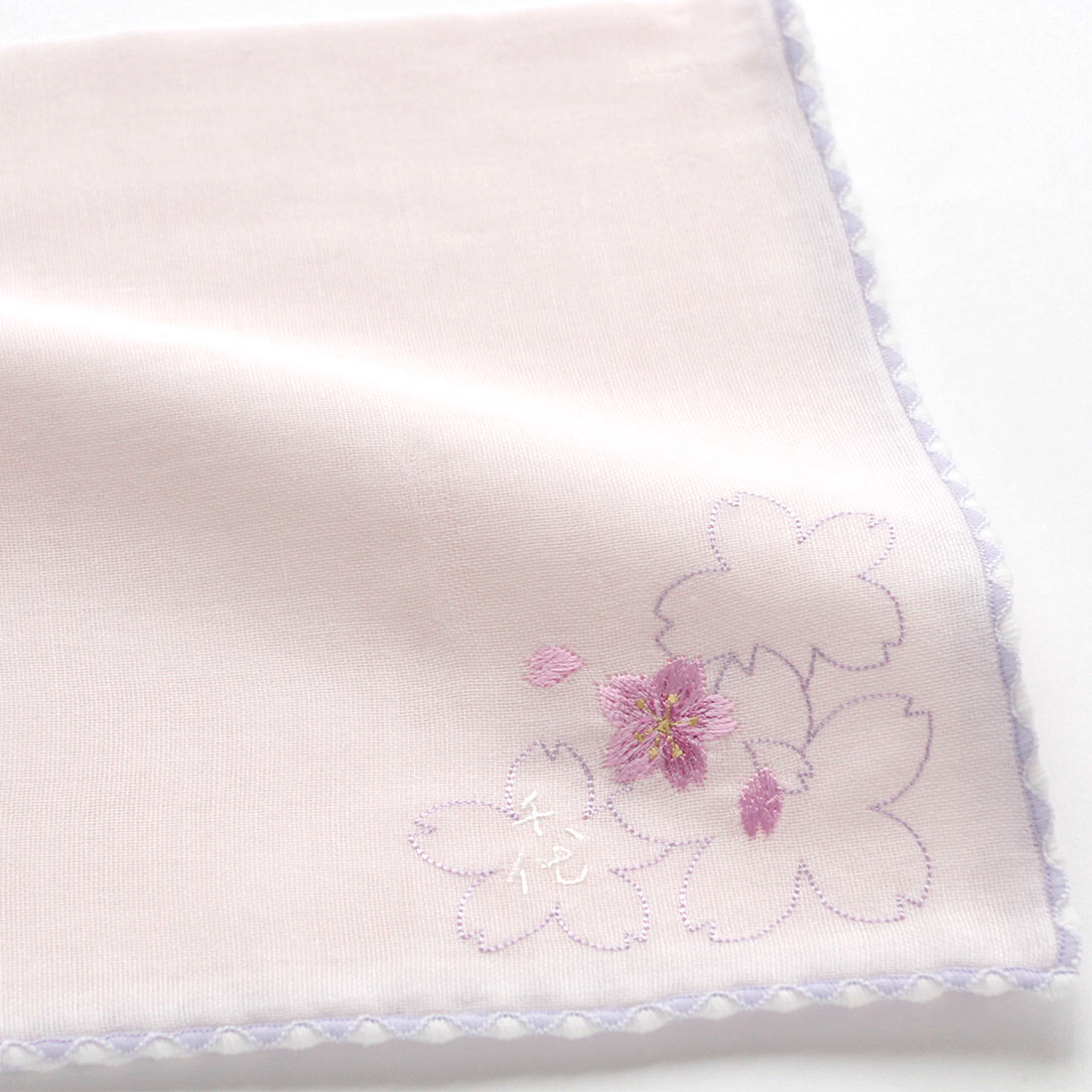 宇野千代 二重ガーゼハンカチ 桜刺繍 0007 ラベンダー 【宇野千代】