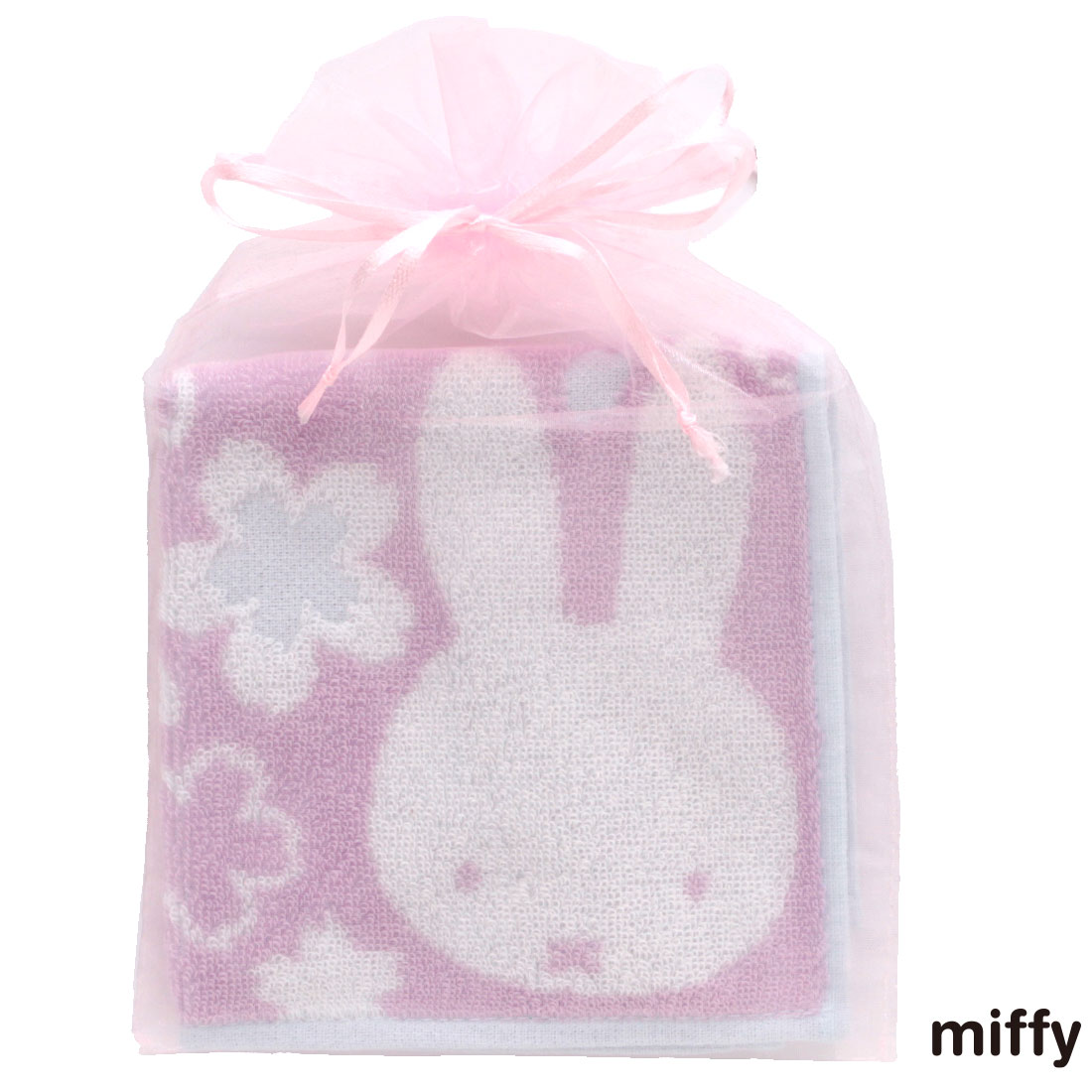 ミッフィー タオルハンカチ 桜シリーズ(オーガンジー巾着パッケージ入り)満開桜 ラベンダー 【miffy】