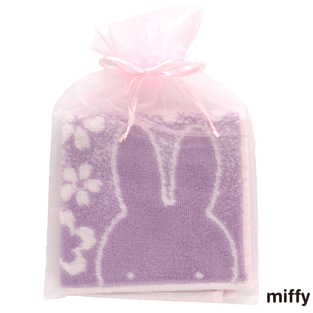 ミッフィー タオルハンカチ 桜シリーズ(オーガンジー巾着パッケージ入り)グラデーション ラベンダー 【miffy】
