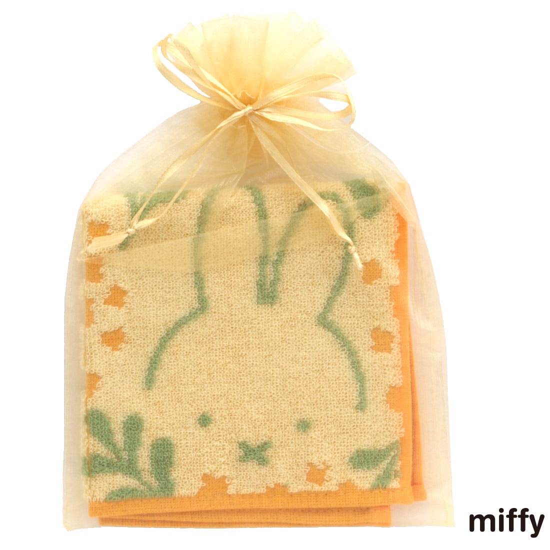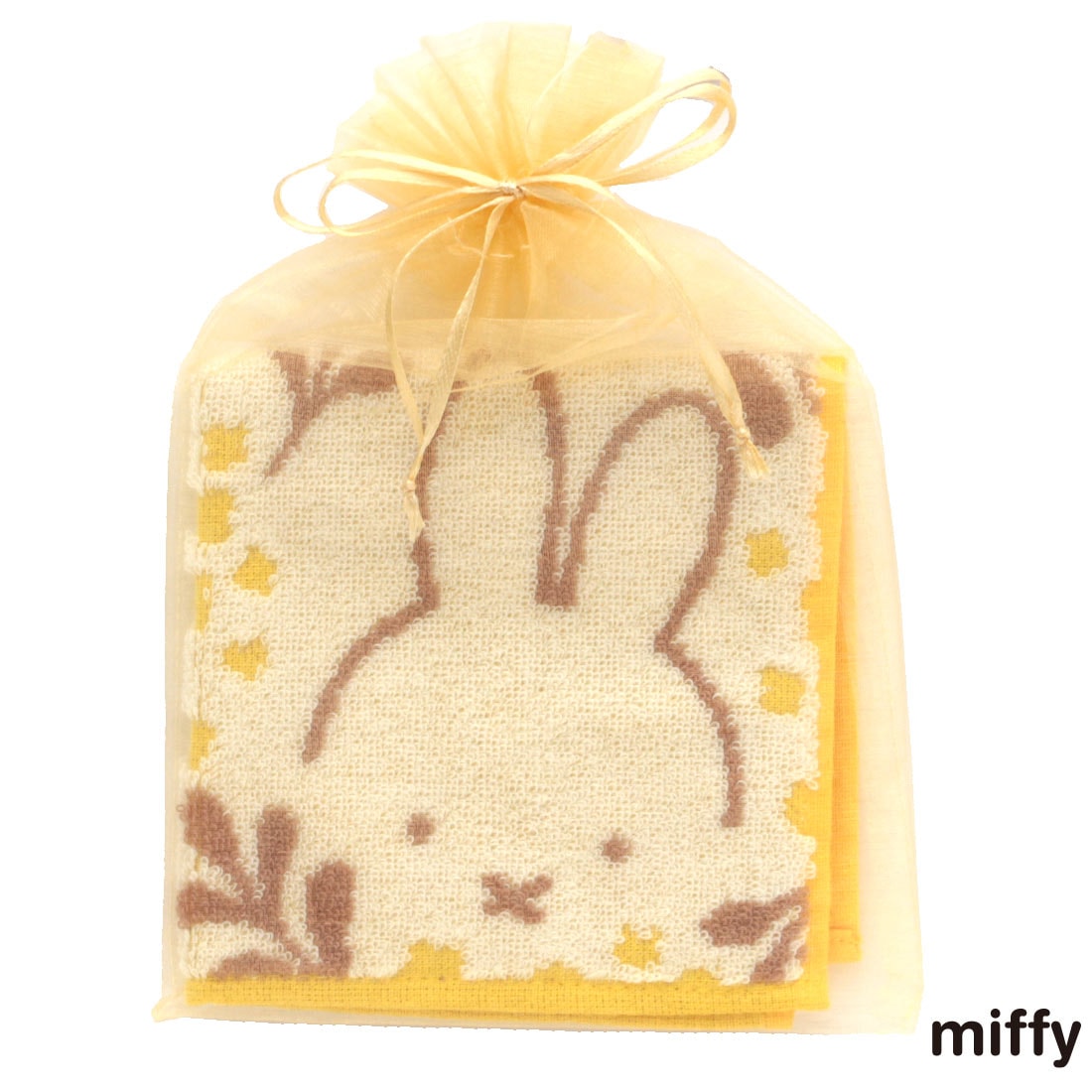 ミッフィー タオルハンカチ ミモザシリーズ(オーガンジー巾着パッケージ入り)ミッフィーとお花 イエロー 【miffy】