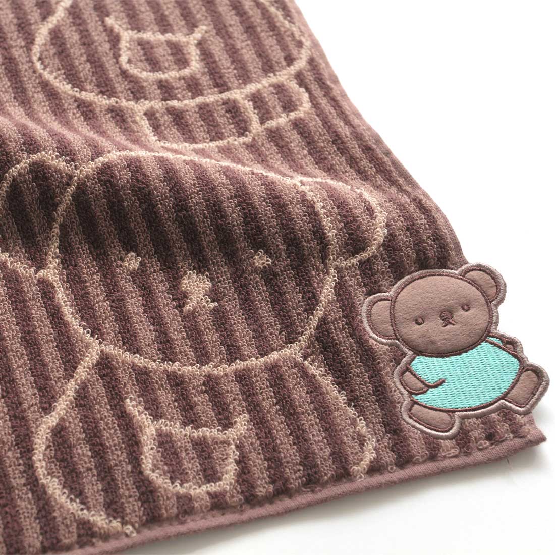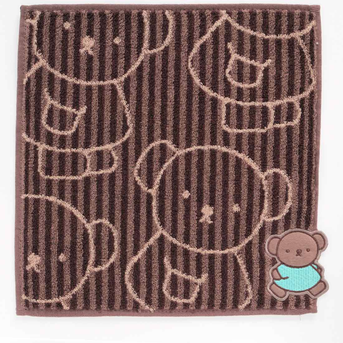 ミッフィーの絵本に登場するくまのボリスを全面にデザインしたタオルハンカチです。配色ごとにポーズが違うボリスをアップリケ刺繍で表現しました。