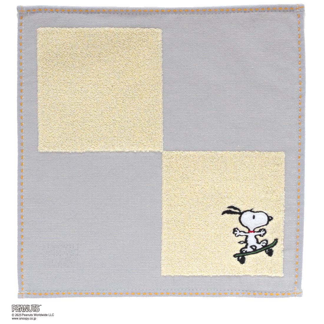 スヌーピー メンズ 表ガーゼ地・裏タオルハンカチ チェック ワンポイント刺繍 グレー 【PEANUTS】