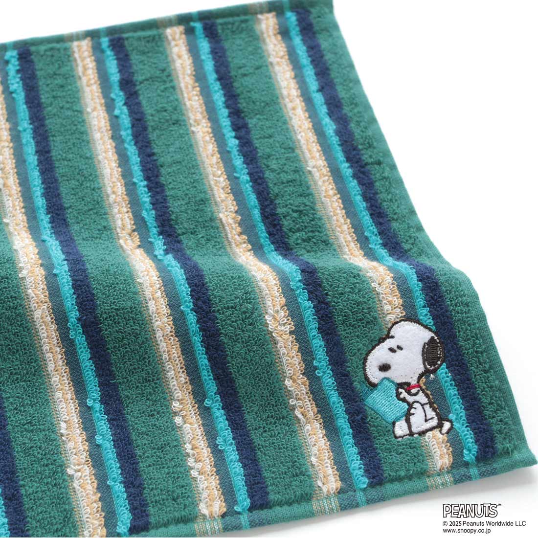スヌーピー メンズ タオルハンカチ スタイリッシュボーダー 読書 ベージュ 【PEANUTS】