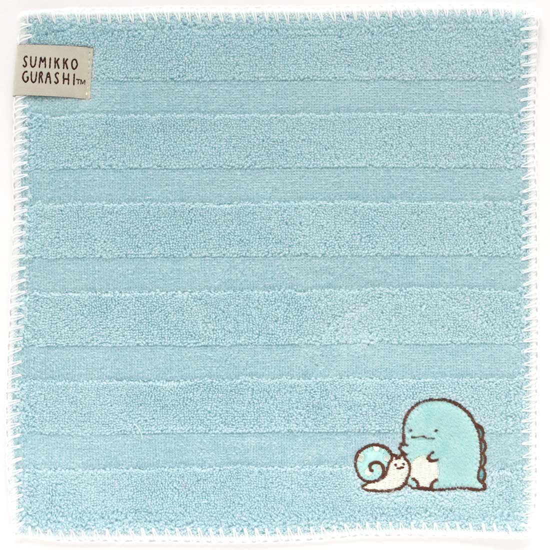 すみっコぐらし タオルハンカチ ボーダー柄 とかげとにせつむり ブルー