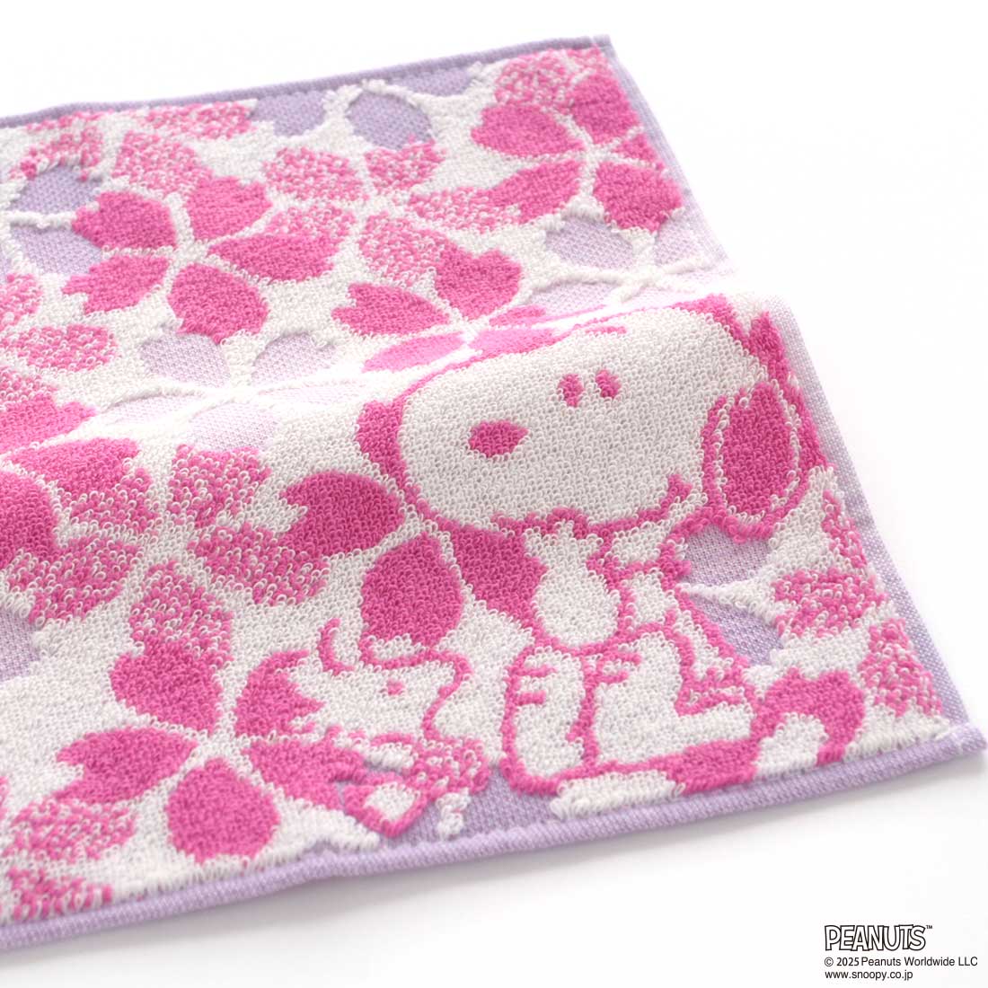 スヌーピー タオルハンカチ 桜シリーズ(オーガンジー巾着パッケージ入り)葉桜 パープル 【PEANUTS】